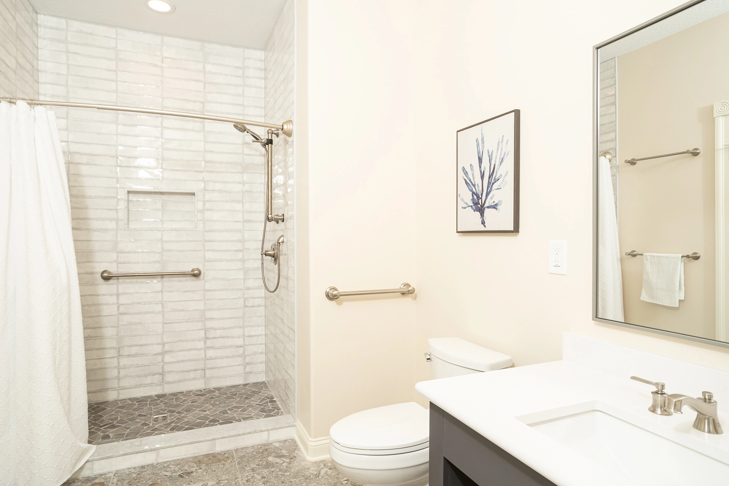 King, Standing shower, 3’ doorways, Handicap-friendly shower with grab bars, Roll-under sink, Deck access