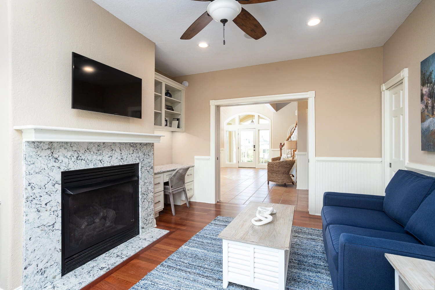 "Open spaces, large bedroom with private bath, loved the kitchen-best stocked that we have had every in the last 12 years traveling to OBX. Pool area was great, great outdoor furniture, loved the fireplaces!!"