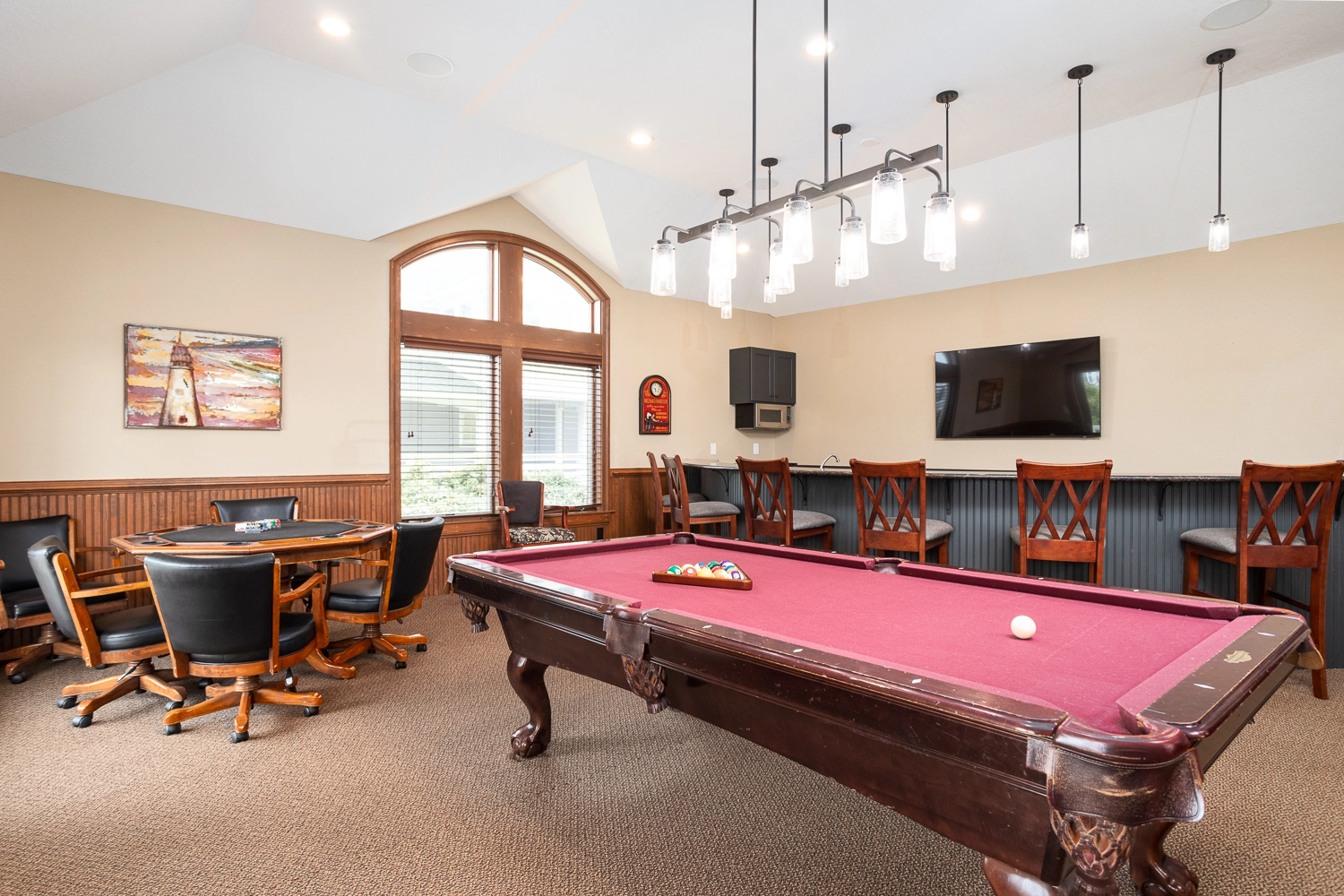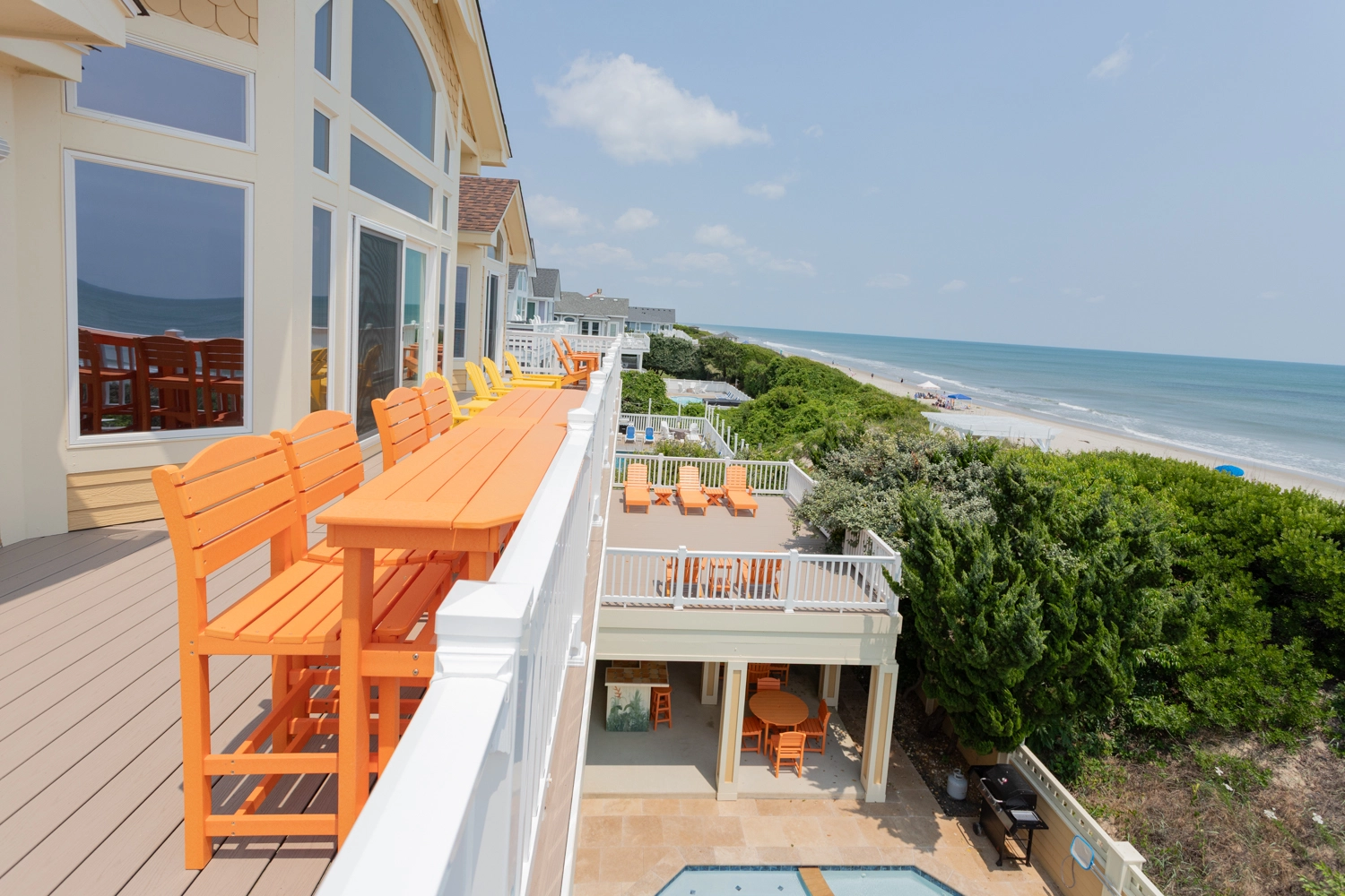 Sports bar with 20’ bar, pool table, game table, bistro table seating and spectator bench; access to private covered westside deck; exercise room; library with gas fireplace; oceanfront deck.