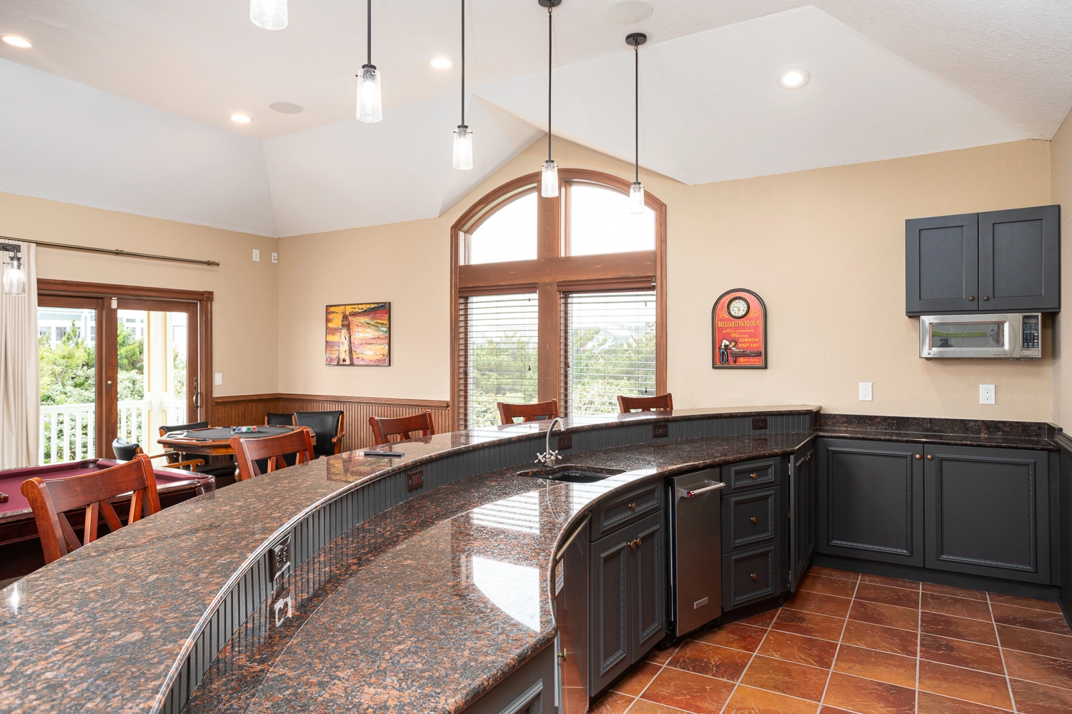 "What a spectacular home! The kitchen was absolutely incredible and so well-appointed! We have been been vacationing in Corolla for 19 years and usually try a different house each visit. This is the first house that we will book again. Incredibly clean, beautifully decorated, received a lovely gift from the owners. Our children and their significant others loved the bar/billiard room, the sound system was a great feature, loved the enormous couch, everything was just in superb condition! I just can't say enough! Also I highly recommend Twiddy - the best rental company in my experience."