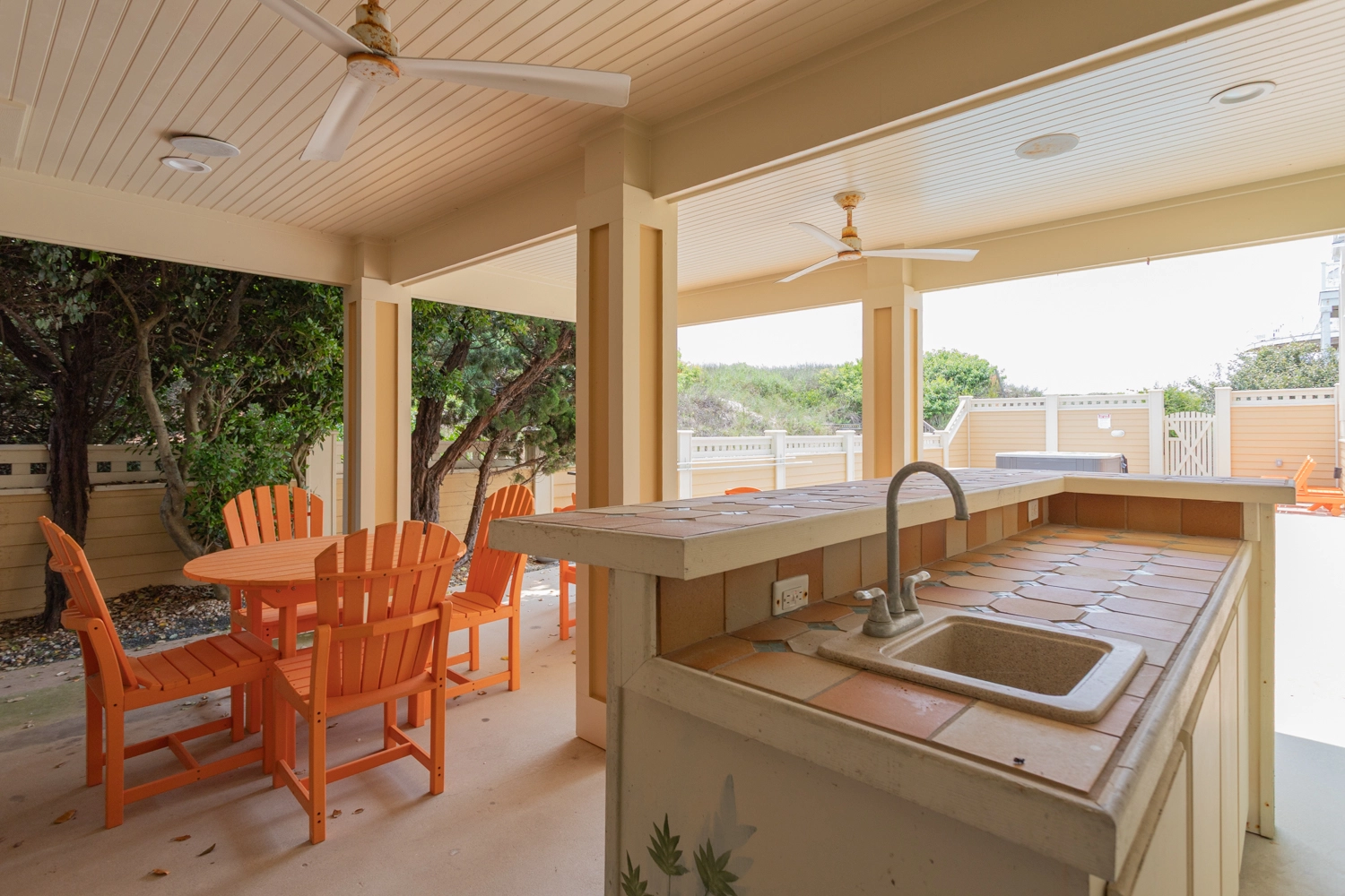 "A wonderful home for our multi-family vacation. Enough space for everyone to spread out, and some exceptional common areas to gather such as the billiards room, kitchen/dining/great room, and theater. We even had 2 little ones under 4 that slept soundly while the rest of us had plenty of full-volume fun. We thoroughly enjoyed the large dining table for family meals and board games. The views were fantastic and saw even our night owls waking up for the sunrise over the ocean and occasional dolphin sighting. It was so clean it almost seemed as if we were the first ones to stay there. The grocery store was only a 15 minute walk or a few minute drive down the street. Some of the highlights we weren't expecting were the kitchen and the bathrooms. Multiple showers had steamer attachments and the kitchen was so spacious it was almost fun to clean up after meal time. Overall this house exceeded everyone's expectations."