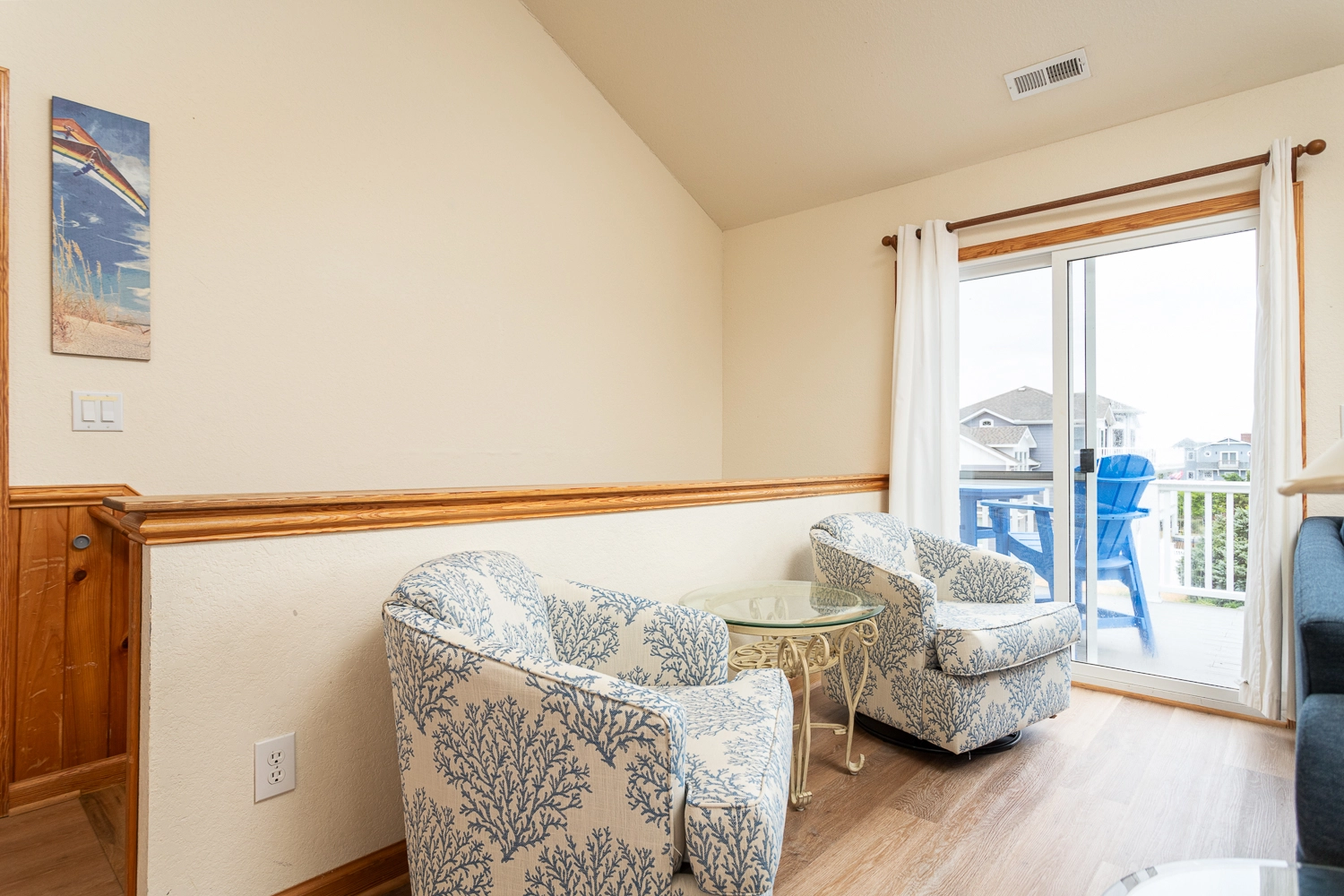 "This was the second time we've stayed in this house. It works well for our size group. It seems to need a little TLC in places and several things were either broken or not working when we arrived - oven handle, sliding door handle, smoke alarm hanging by wires, quite a few light bulbs were out and on our last day the dryer quit working. I will say that Twiddy was quick to fix these items. The living room furniture is a little worn and could use replacing. But overall, we like the house and will possibly stay there again."