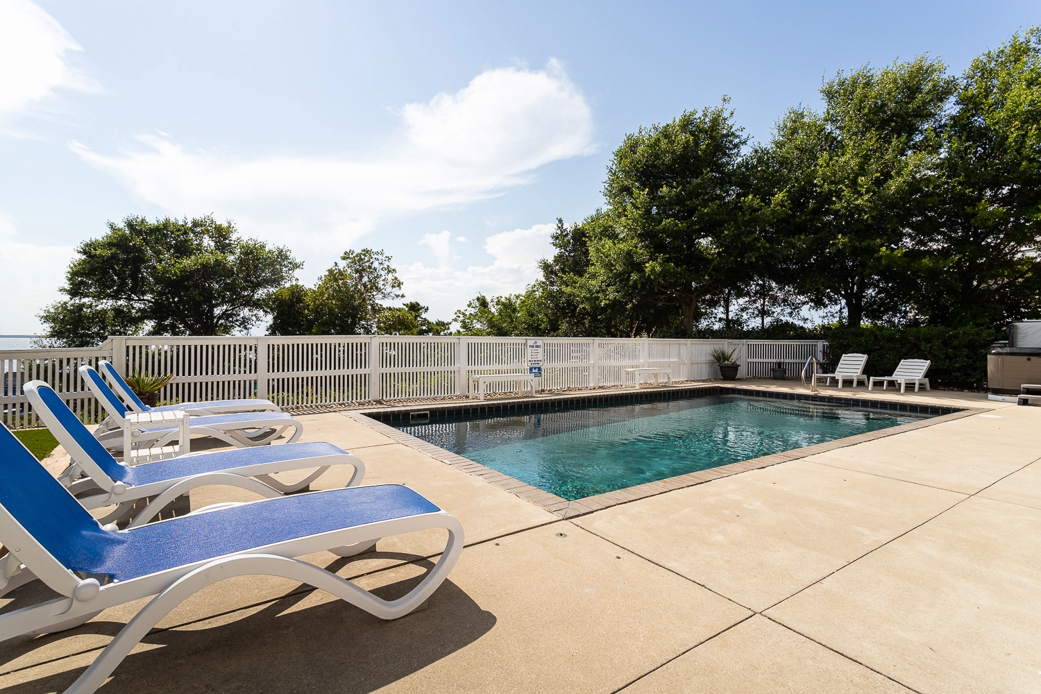 "Location with view of the Sound. Conveniently located to walk thru town and boardwalk. Good size pool."