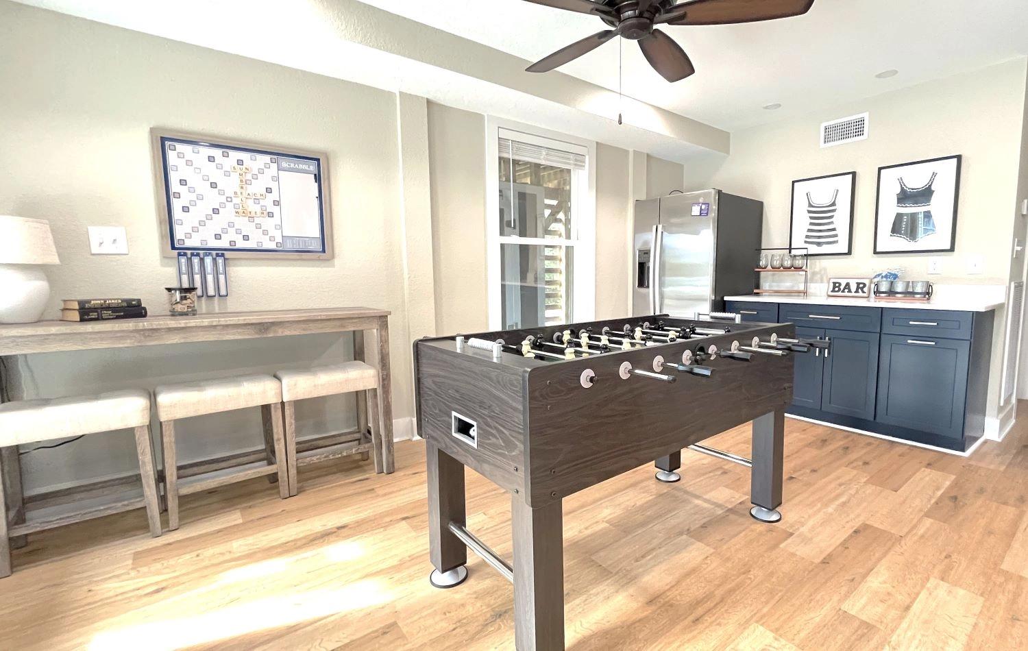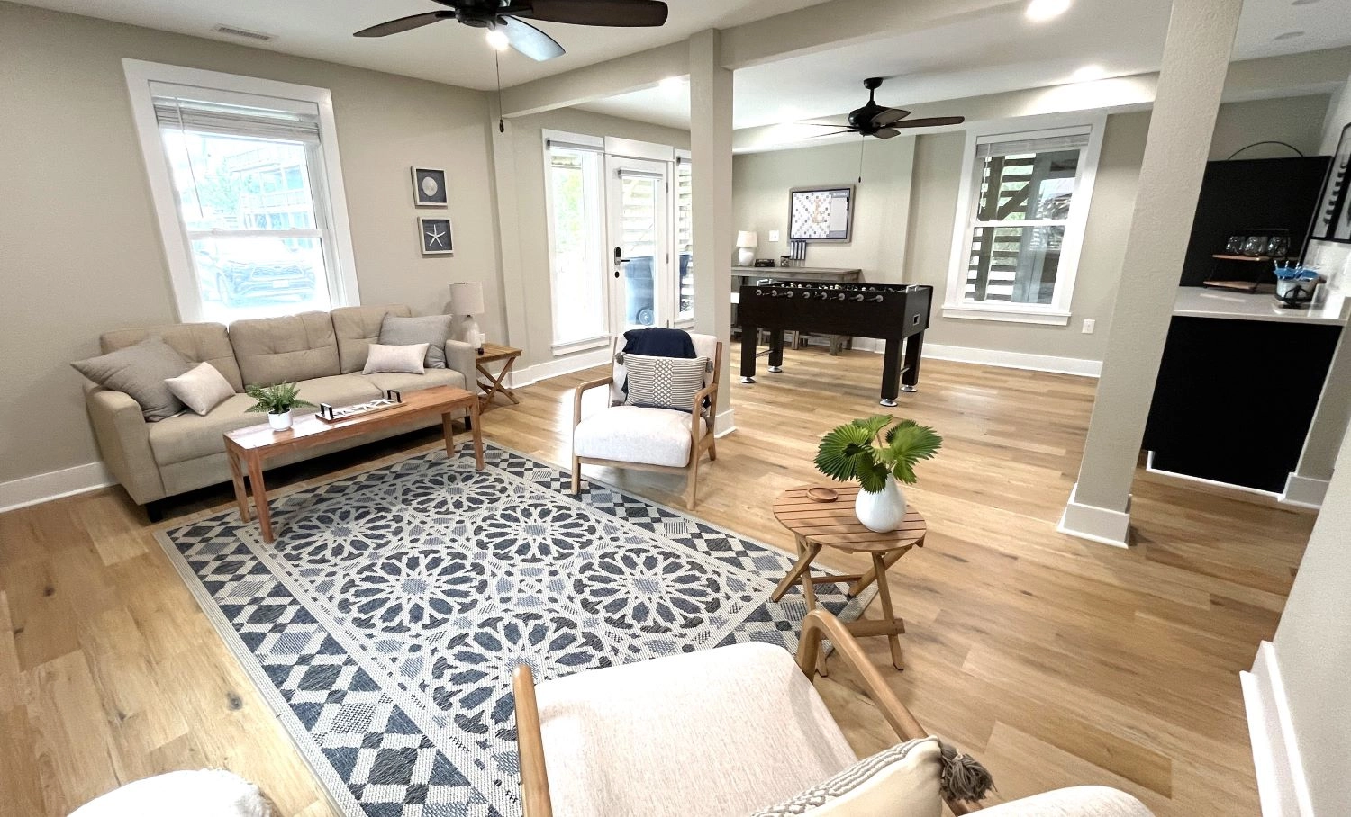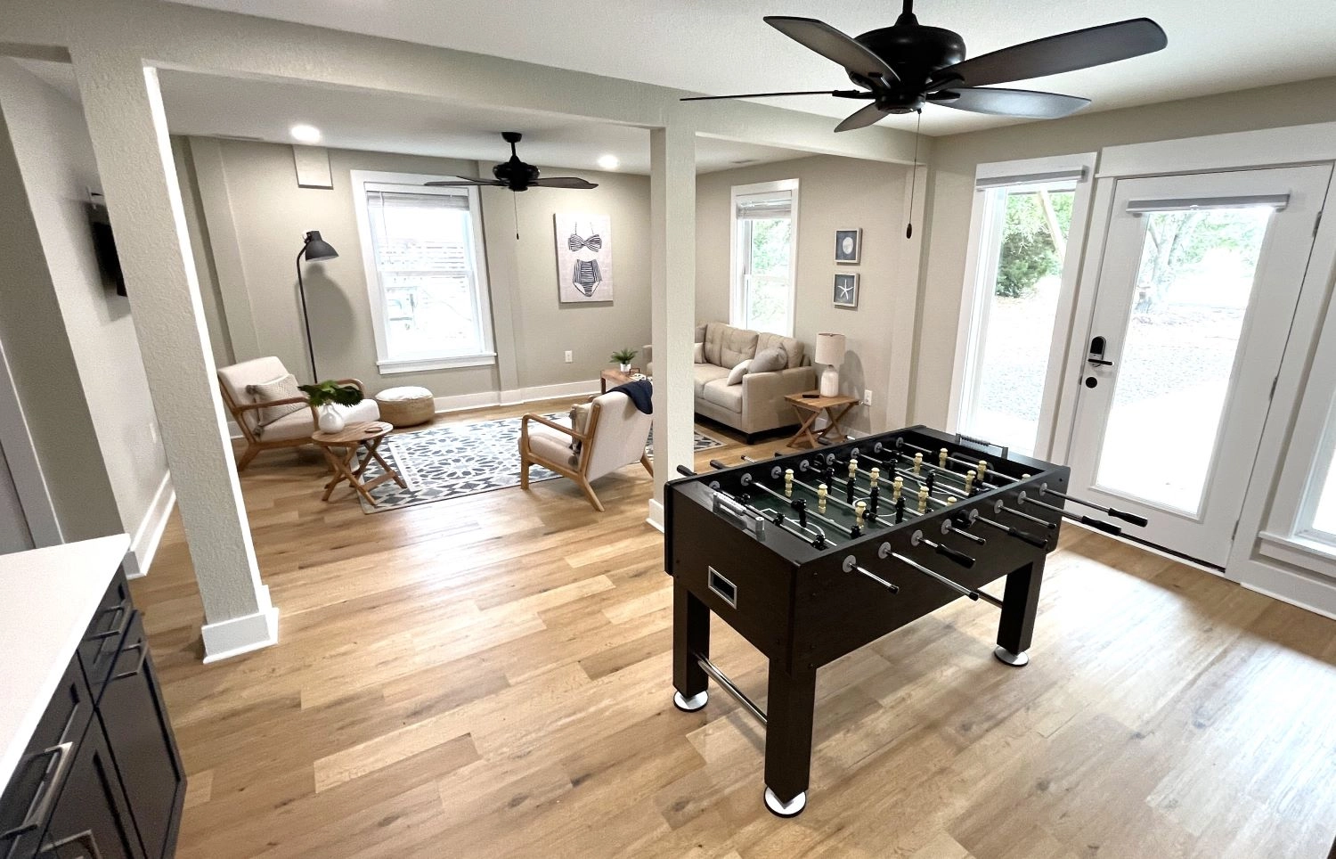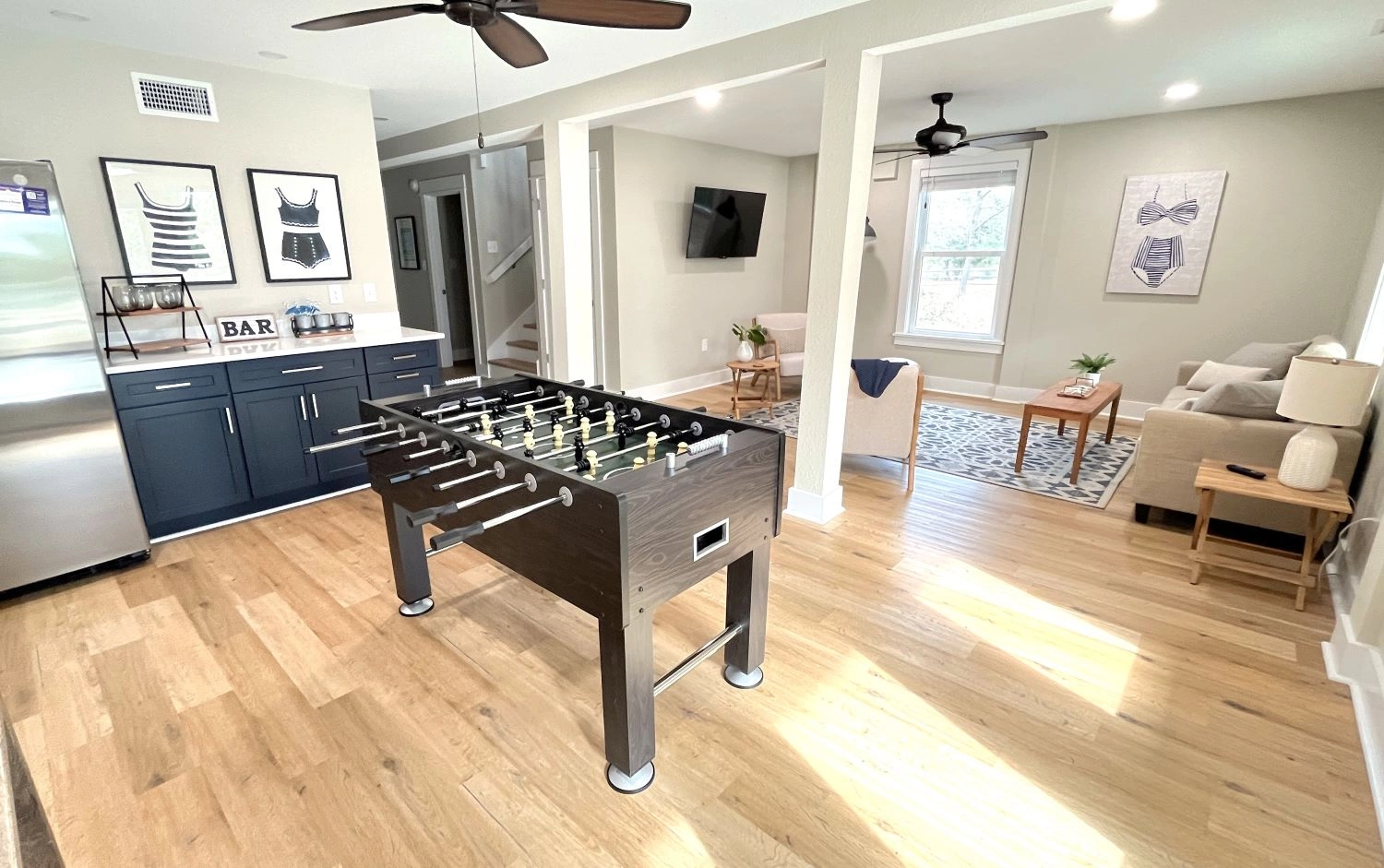 "The home was perfect for our needs. It was very clean, a well designed layout, nicely decorated and the kitchen was well stocked with everything you’d need. The deck was spacious and perfect for morning coffee. The screened in porch was large for us to sit in during the evening and still provided a nice breeze. We enjoyed the fooseball table and games and the selection of books was a nice added touch. The pool and hot tub were beautiful too!"