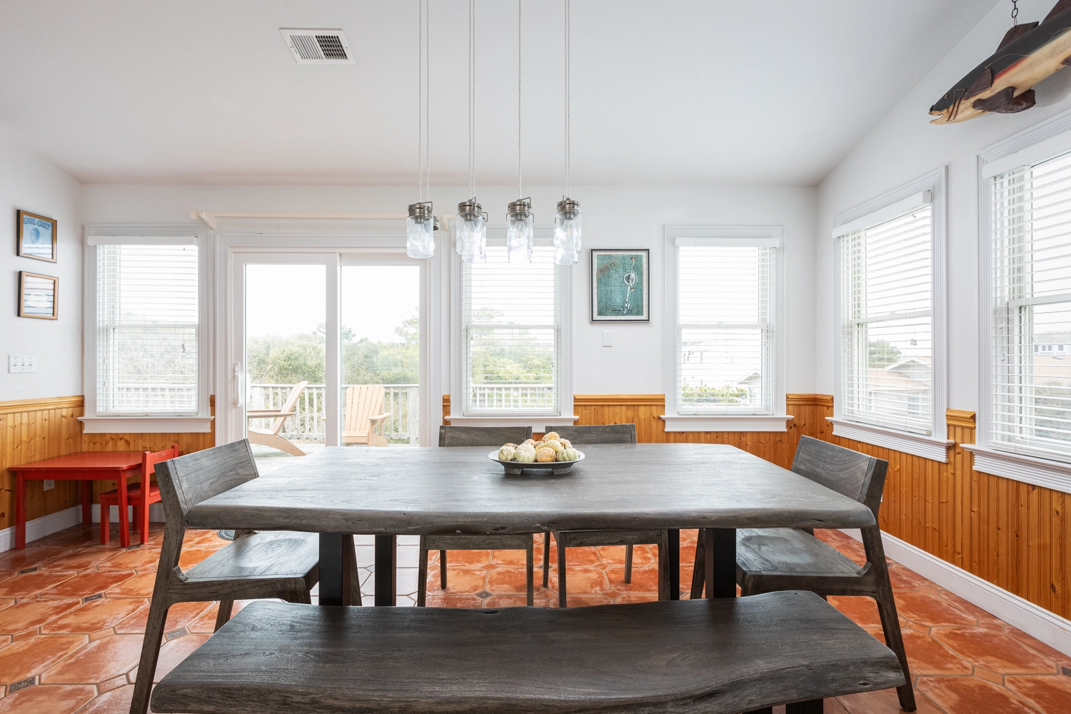 "The house was perfect. Beautiful bedrooms with comfy beds, fun game room leading out to the pool on the lower level. Top level living space included a huge gathering table for meals and games. We loved the quick walk to the beach and fenced backyard for our pups. Views of the water on both the front a back porches. The location in Duck is wonderful too. The street is still near the north end of the boardwalk but not at the center of town. We used our Ocean Atlantic Rental bikes to quickly go back and forth to town. Looking forward to returning next year."