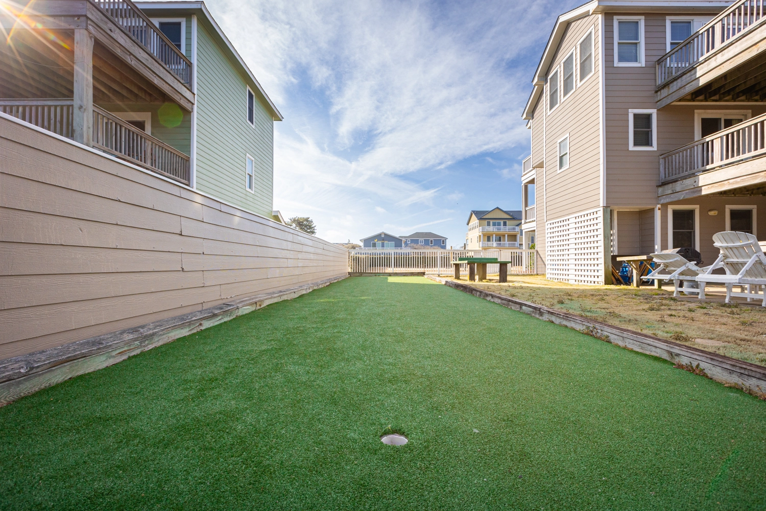 "Proximity to beach and Duck Business District. Outdoor activities such as the putting green and volleyball court."