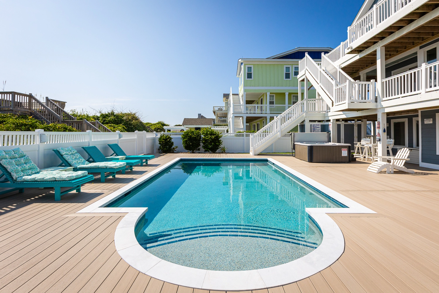 Elevator, private pool, hot tub, charcoal grill, outside half bath.