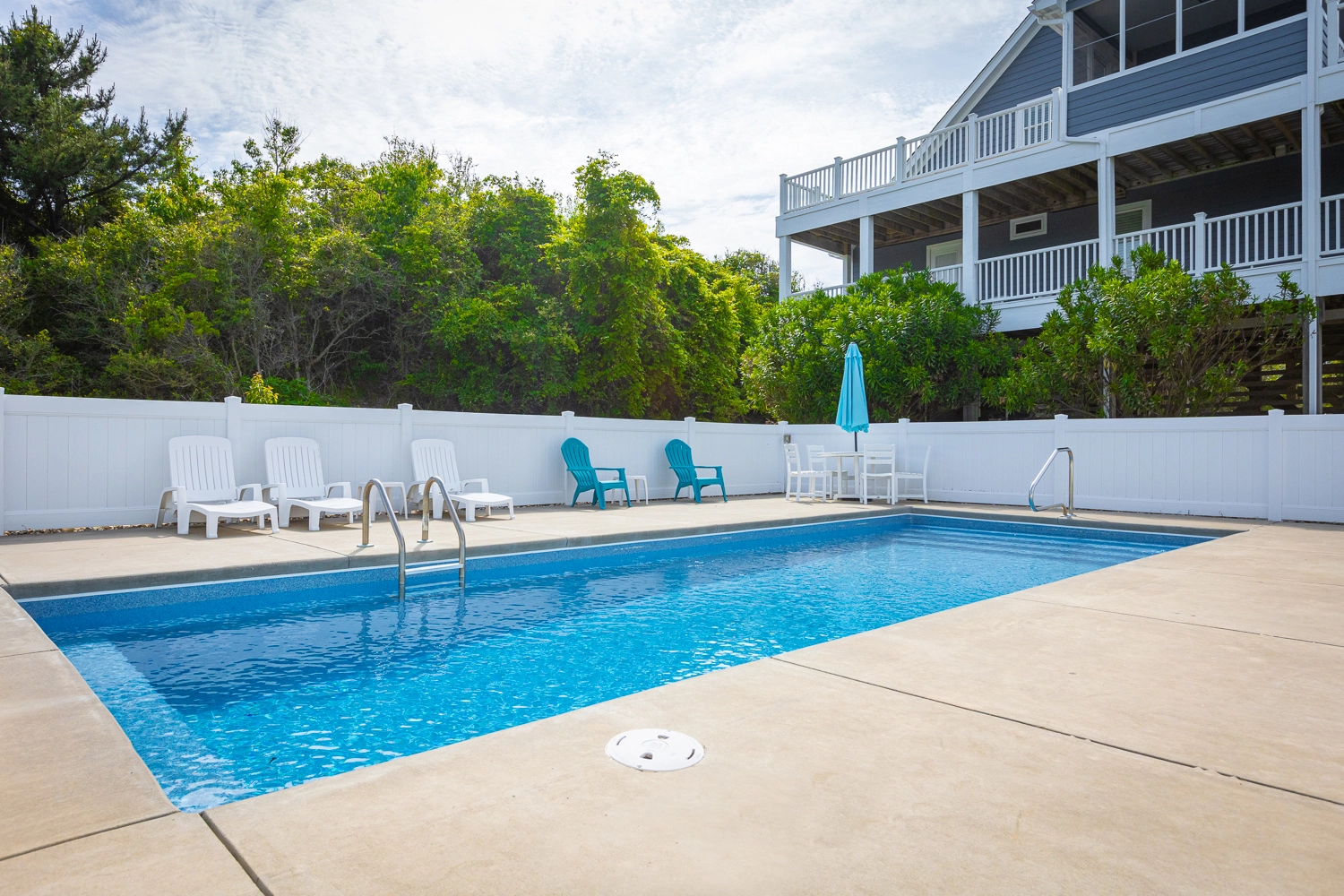 "Nice home in Caffey's Inlet, close to shops & restaurants in Duck. Pool was very nice, as was remodeled top floor with open concept Kitchen & Great Room. 2nd floor with bedrooms is a little dated but clean and comfortable. Home is on a quiet cul-de-sac, short walk to the beach. Would definitely rent this home again."