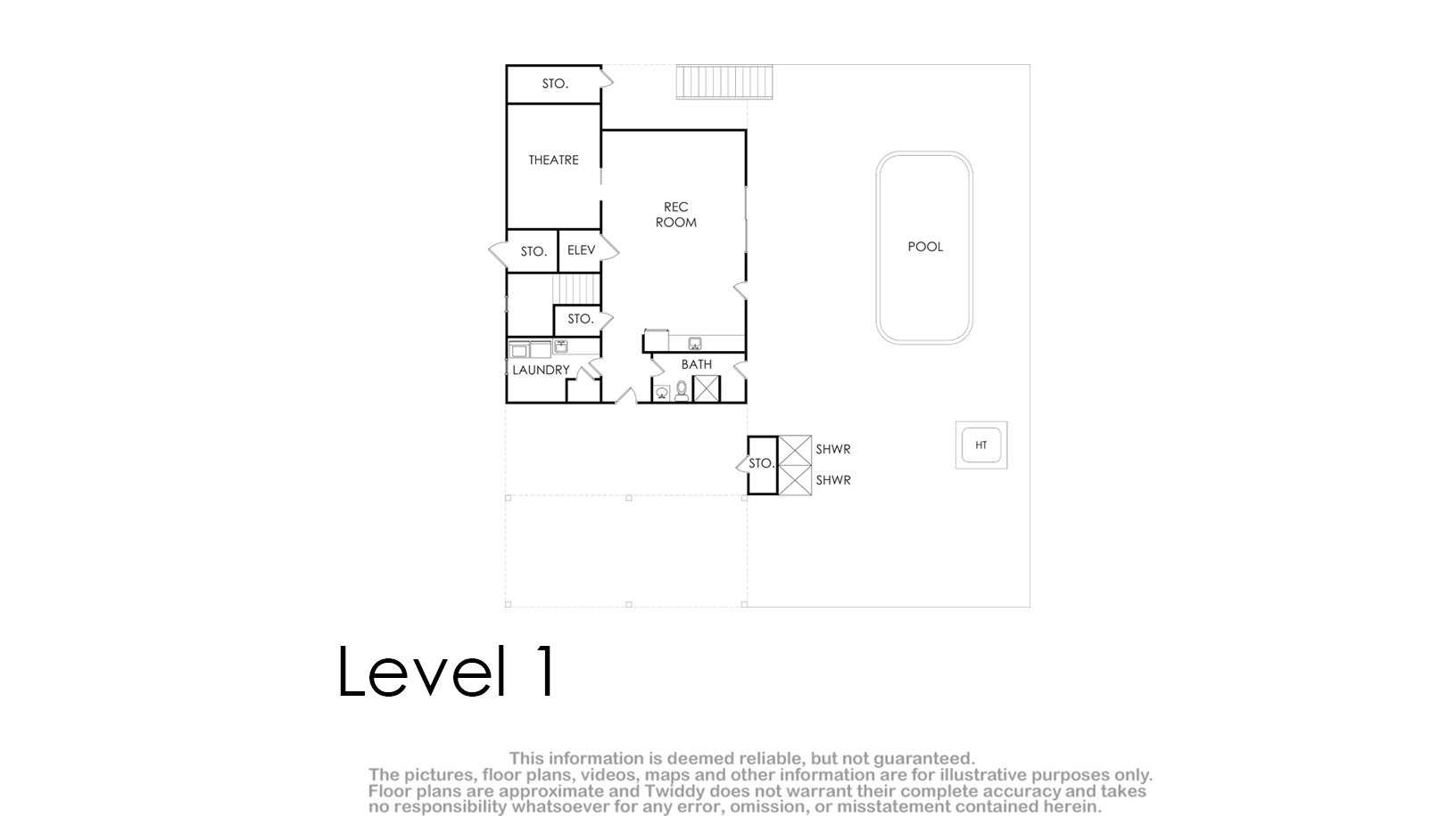 Media room; rec room with pool table, foosball, shuffleboard and wet bar with refrigerator; laundry.