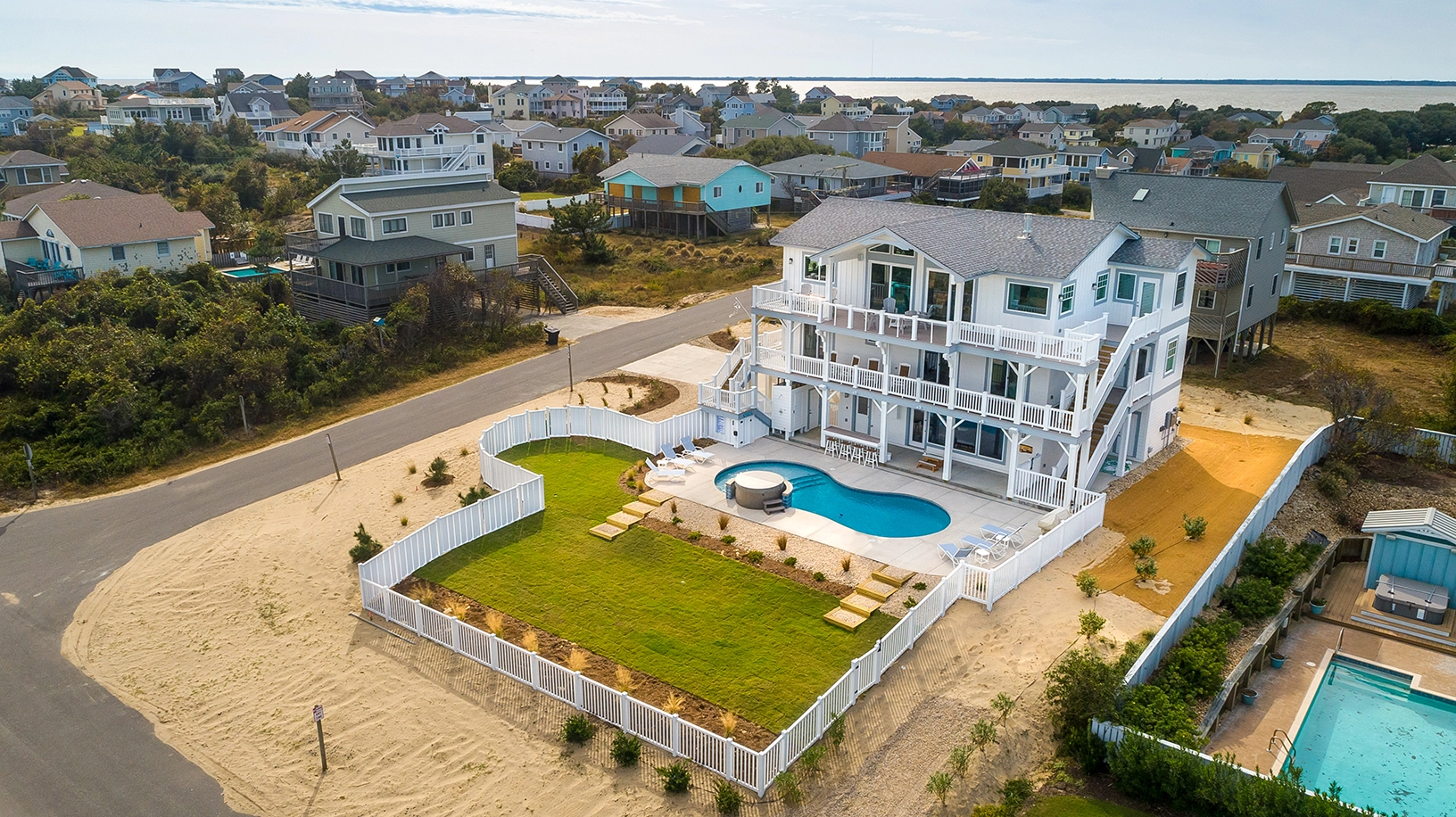 "Beautiful kitchen, pool, hot tub & the bottom floor game room/ media room was really well done-my kids loved it. House has beautiful ocean views- it’s perched up On a hill. We have been going to duck for 15 years and this is our favorite rental ever!"