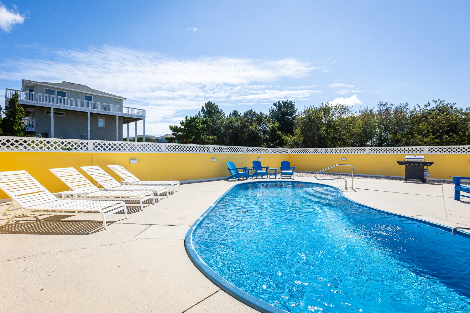 "This home had everything that we needed. It had a parking space for our muscle car, so that we could park it out of the elements for the night after a day of cruising for the OBX Rod and Custom Festival. The pool/hot tub area was large and clutter free. The home was spacious, bright and just the right size for what we needed. Furniture (including the beds) were very comfortable !! We loved all of the windows and doors to open for that fresh air and ocean sounds. Loved the sitting porch to watch the sun go down. Overall the home was perfect for us."