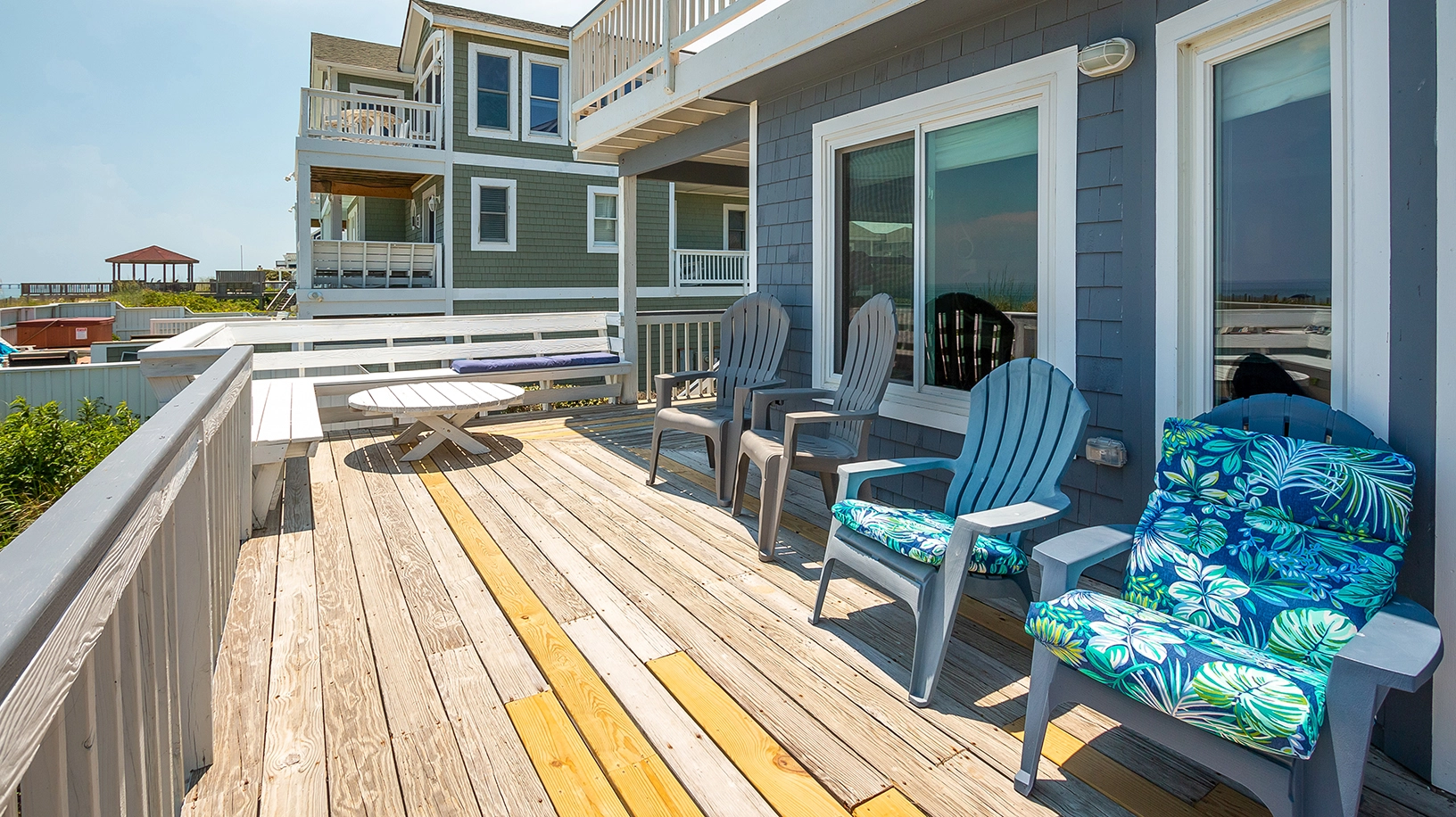 "This one checks all the boxes for our family! We LOVED it and have reserved for next year. The direct access to the beach from the main level means no stairs! This was a game changer for arthritic knees. The new floors were easy to keep clean. The pool was a great way to end the day."