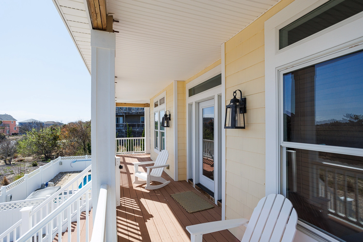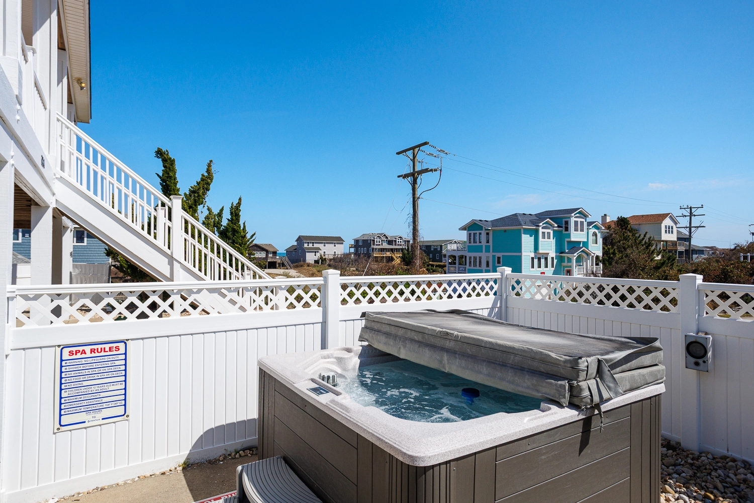 "Sunny Duck is well designed and comfy. Everything inside is good quality, the furniture, the kitchen appliances and cookware. The rooms are good sizes too. Beds were comfy. The upstairs TV was a little complicated to use. We used the hot tub almost everyday and it worked well. The grill worked but its seen better days. And the outside could use a little more attention. True, OBX has a midge fly problem, but the true enemy are the spiders that trap midges from who knows how long ago, and it makes the outside of buildings looks terrible. You will find that in shopping areas of OBX they don’t clean and it shows. In spite of this Sunny Duck is still a gem. Perfect distance from the beach. We loved it and would book again."