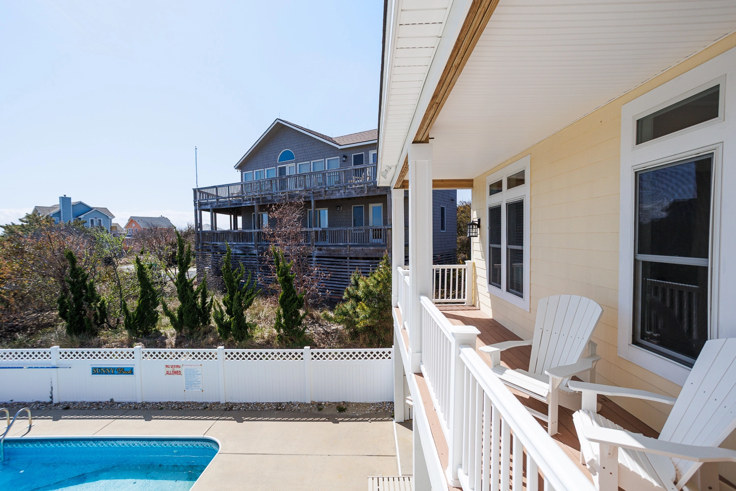 "Sunny Duck was a perfect home away from home for our extended family which included children from 1-11. The home is well kept and very organized. The beds were comfortable and the kitchen was well stocked. Two dishwashers and two refrigerators in the kitchen were so nice to have with a large group. The ocean views were beautiful and close proximity to the beach access was great. We enjoyed the pool, hot tub and theatre room which had a large and varied selection of movies to enjoy. We have been coming to Duck for many years and Sunny Duck is definitely our favorite house!"