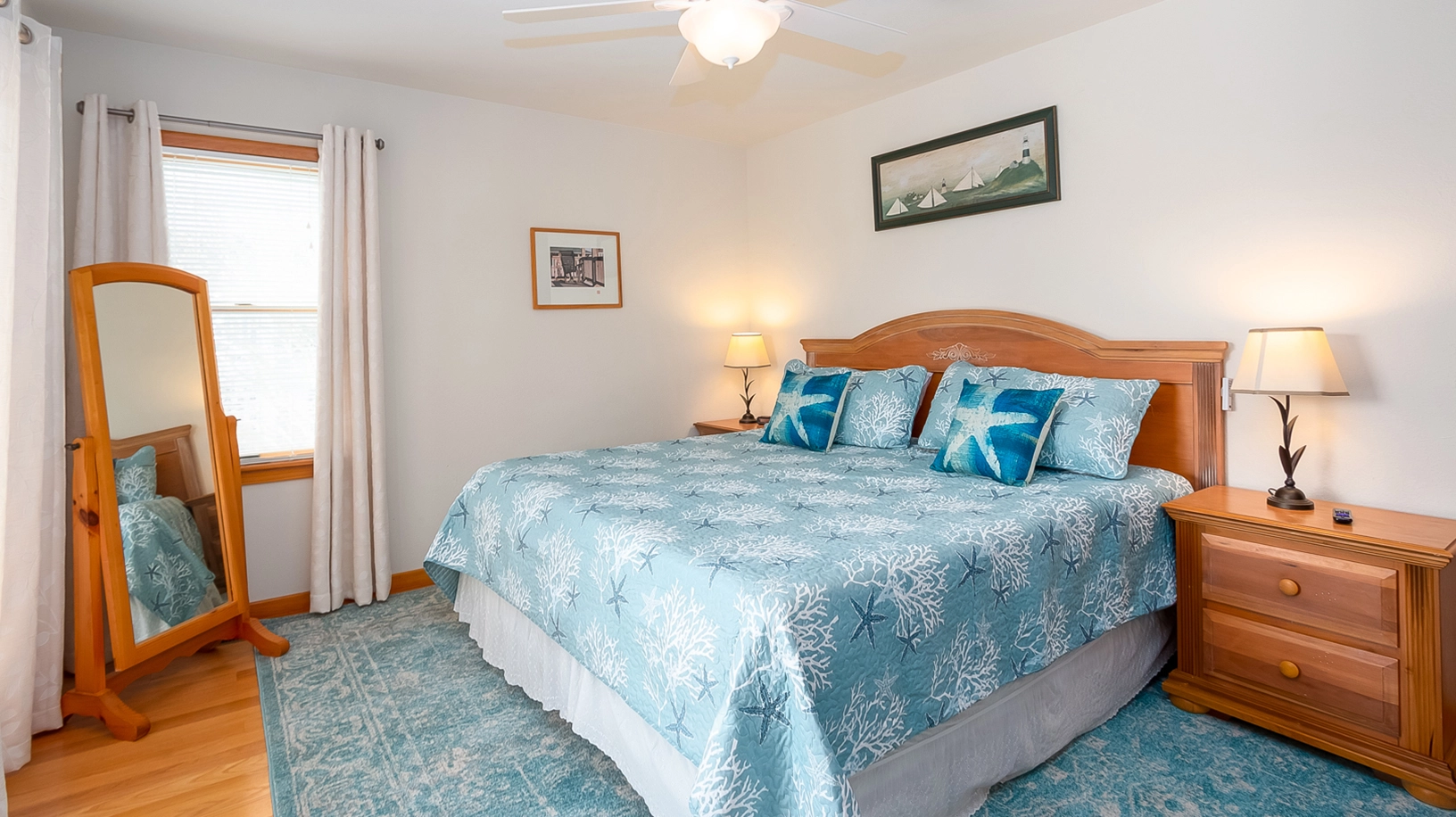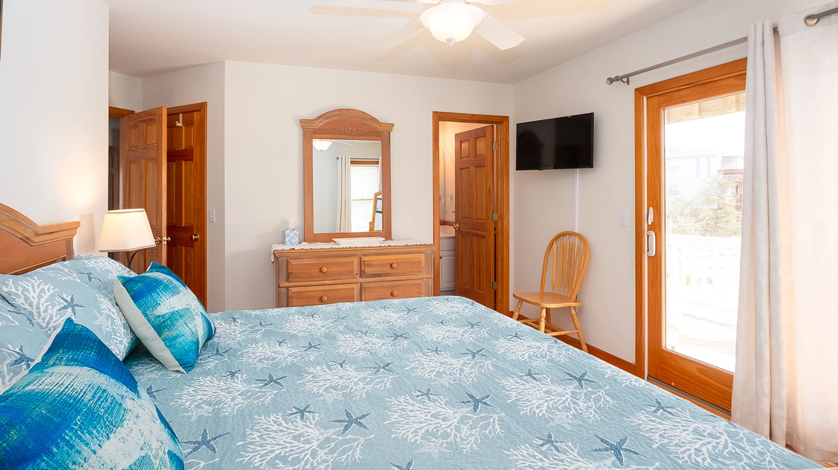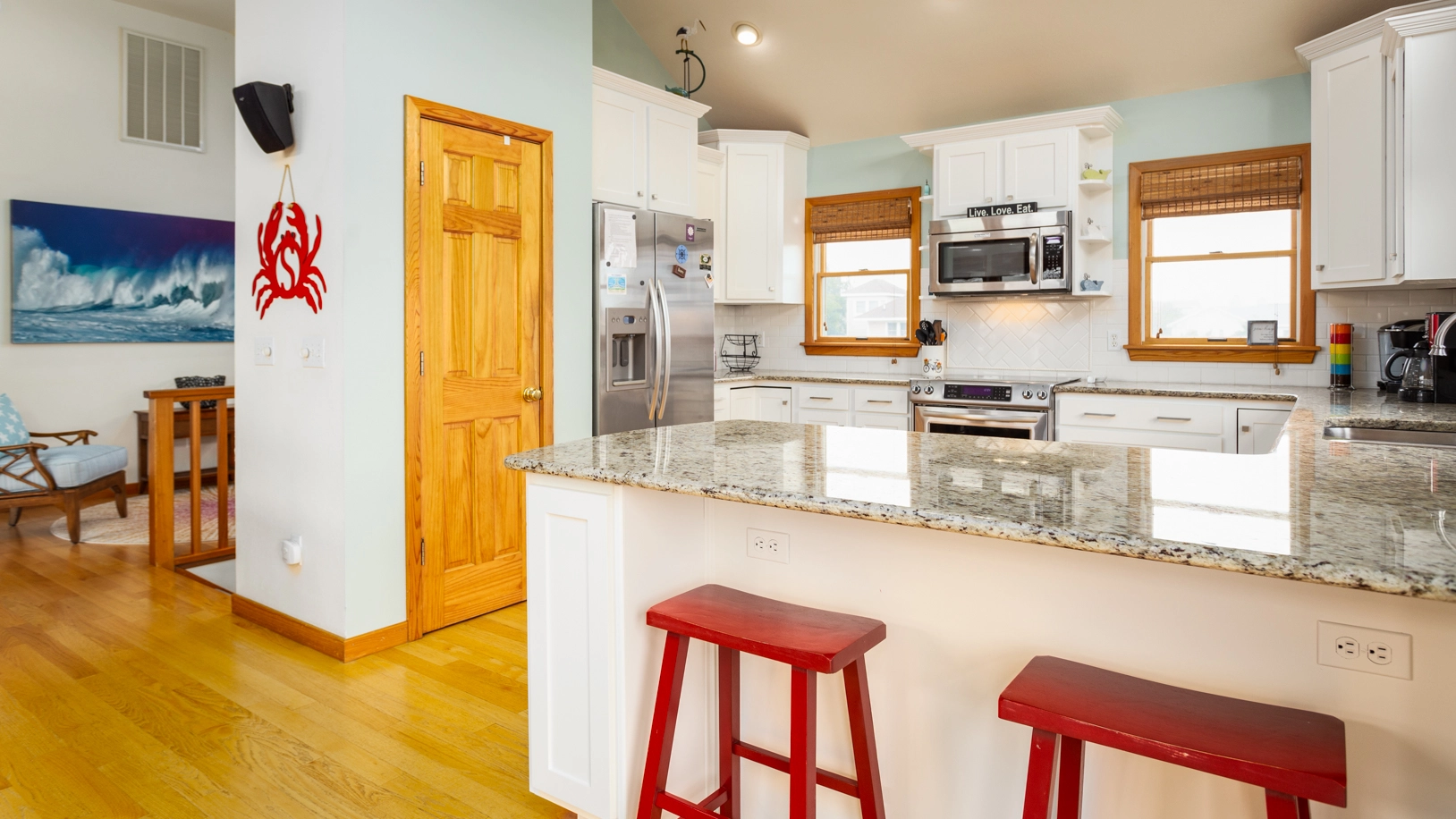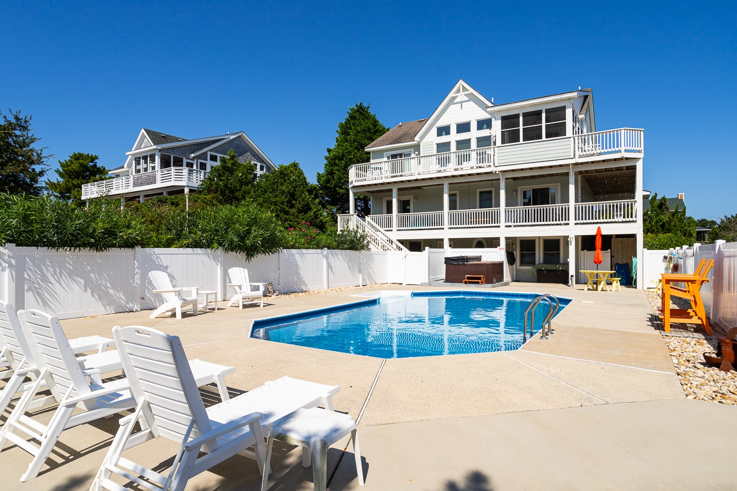 "Beautiful home with a well equipped kitchen and very nice pool. We loved the location in the heart of Duck. Easy beach access and the neighborhood was very nice. The home is decorated beautifully and was comfortable. One negative: the house was COLD due to the AC being preset. A technician came by and adjusted the thermostat for us."