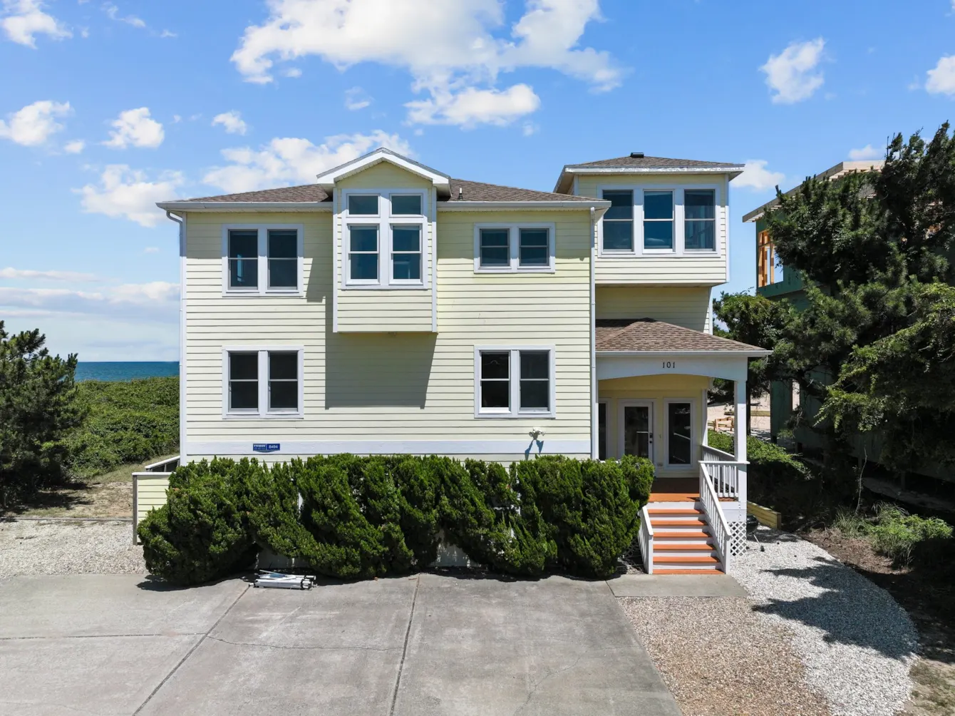 "Great location on the beach and near town. Nice neighborhood. Pool and hot tub very nice. Downsides- except for top level the bedrooms are small with no view and tiny bathrooms for our adult group."