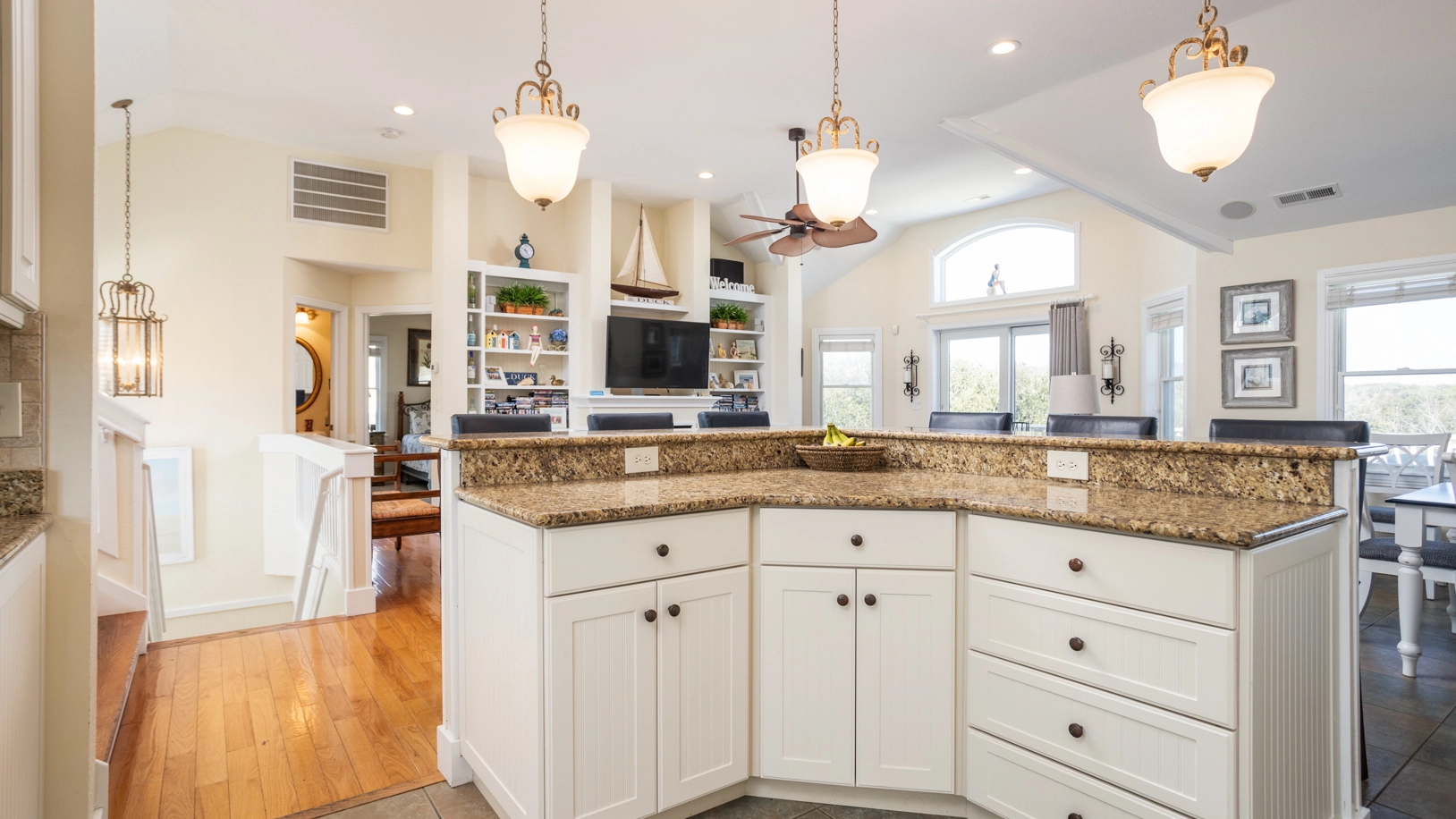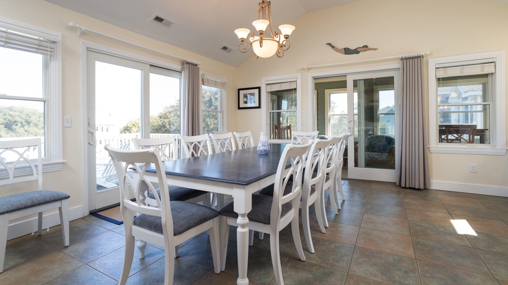 "American Pie was a perfect house for our three generations family vacation. The house is very well laid out with a beautiful great room for time together as well as lots of peaceful places for reading, enjoying the deck, or playing cards. One of our favorite parts was the "puzzle loft" where we could take turns working on our annual puzzle while still hanging out with everyone. The older grandchildren loved the bunk room and having a game space for themselves and the little ones loved being in a double twin bedroom near their parents. Our kids love to cook and the kitchen was stocked well beyond any vacation house we've stayed in before. The house is located just a few houses from the beach and it was great to take a walk to the beach each night and play in the waves. When we got back to the house, we used the foot bath and outdoor shower before jumping into the pool before bedtime. We slept very well in the comfortable beds and appreciated that every room had its own bathroom. The owners are clearly people who care about family and anticipated what is needed to turn a vacation house into a second home for a week or two. Thank you for sharing your home with us and providing us with unforgettable memories. We hope to come back to American Pie in two years!"
