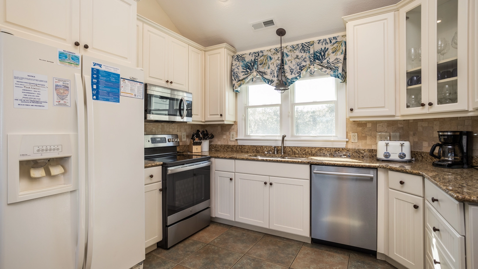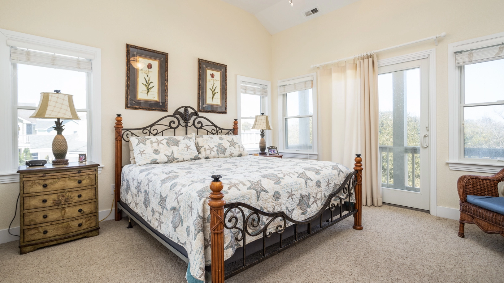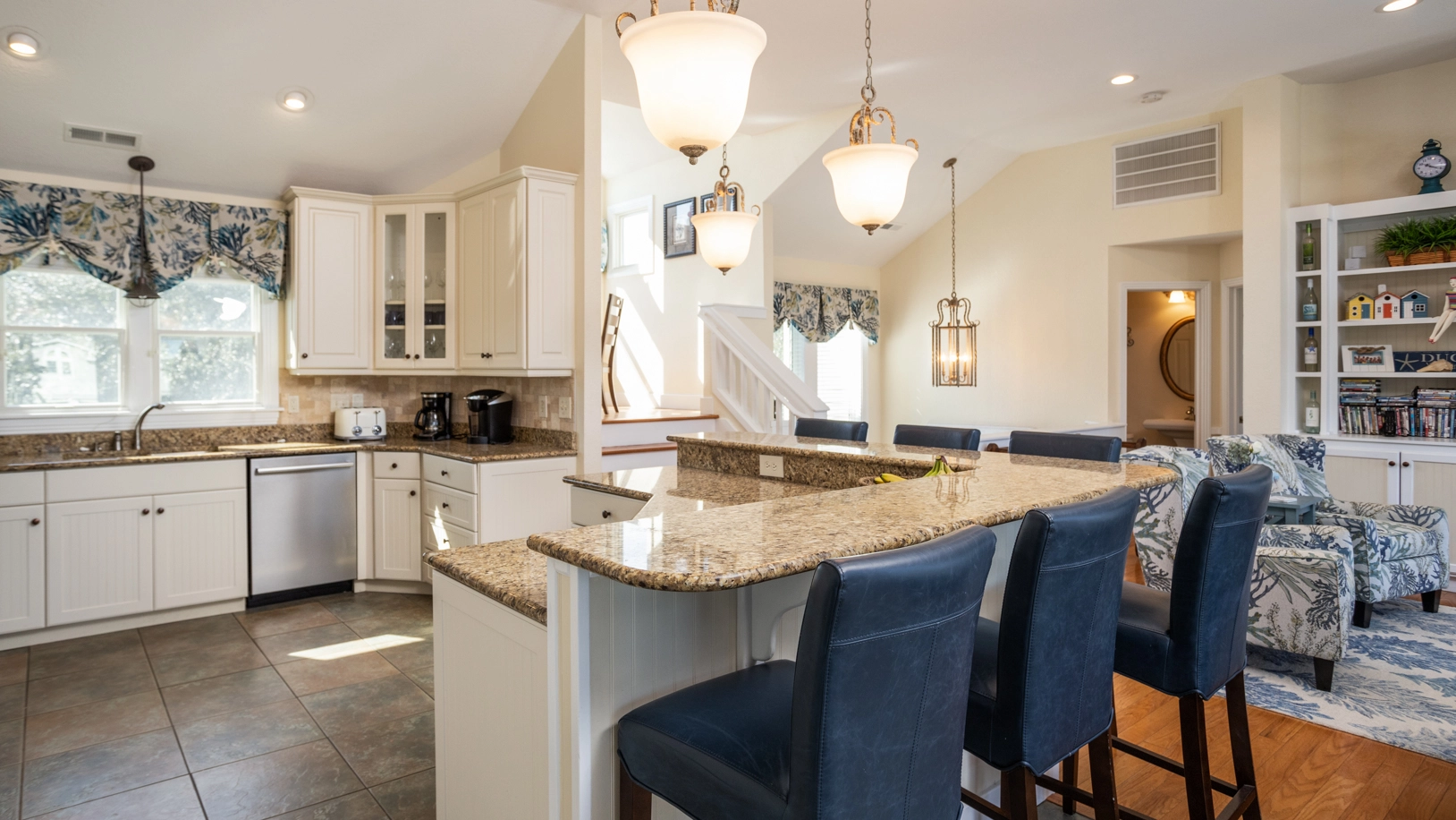 "We love the way the house is decorated. We love the size of the pool and the furniture around the pool The house location is great being on the sidewalk to get to town and the ocean. The bedrooms are good with comfortable beds.. Like the ice maker. One improvement needed for a bedroom is a ceiling fan for the bunk bedroom in the basement. Four teens in there at night with the door shut makes for a hot room no mater what setting the air conditioner is on.."