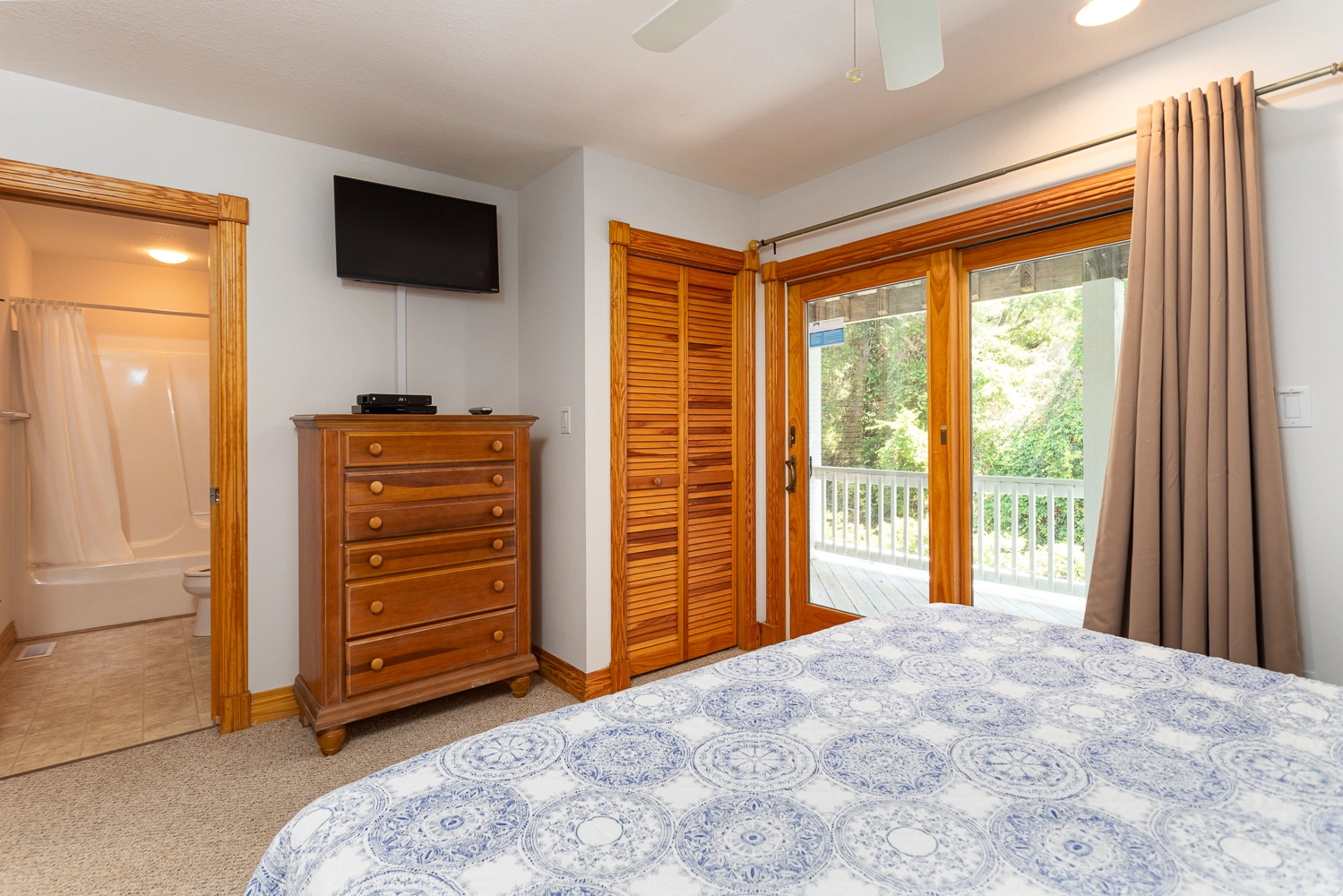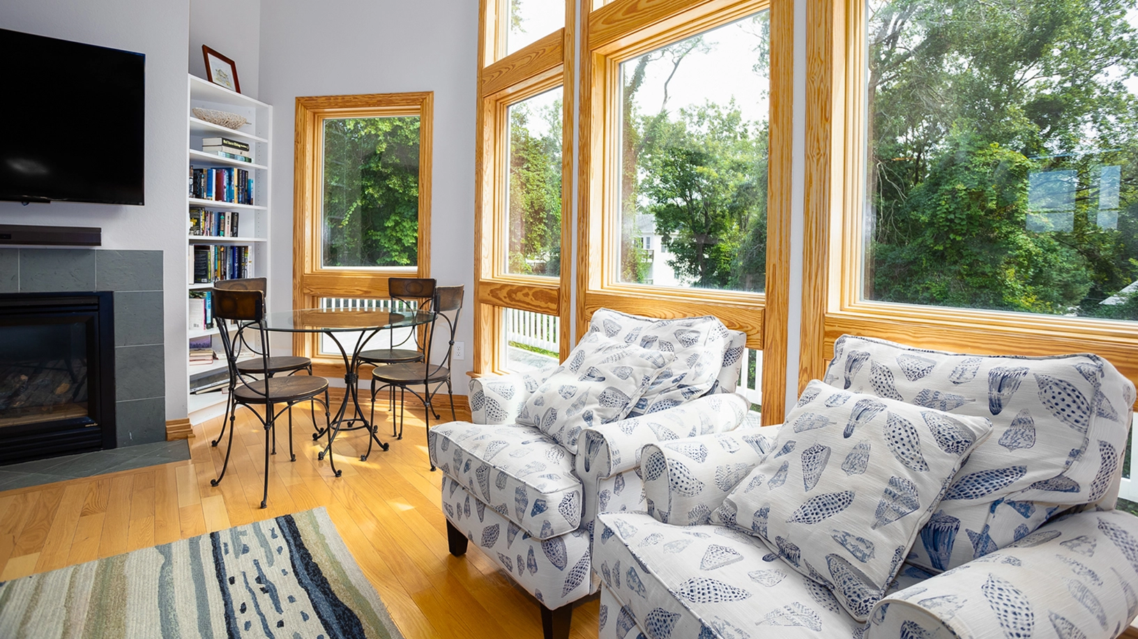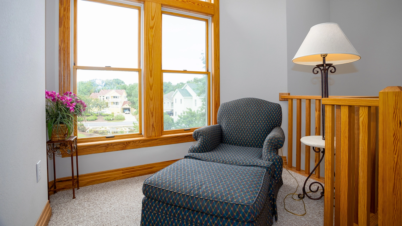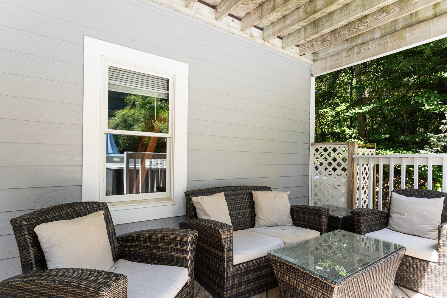 "The community space on the second floor; ample parking; bedrooms for everyone; the pool and hot tub; all of the places to sit and read outside (decks, patios, porches, etc)"