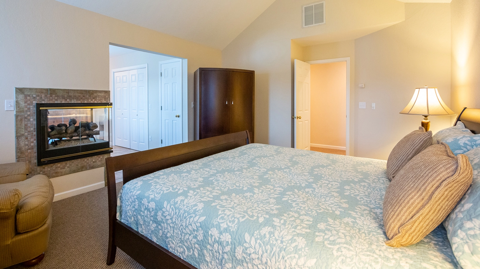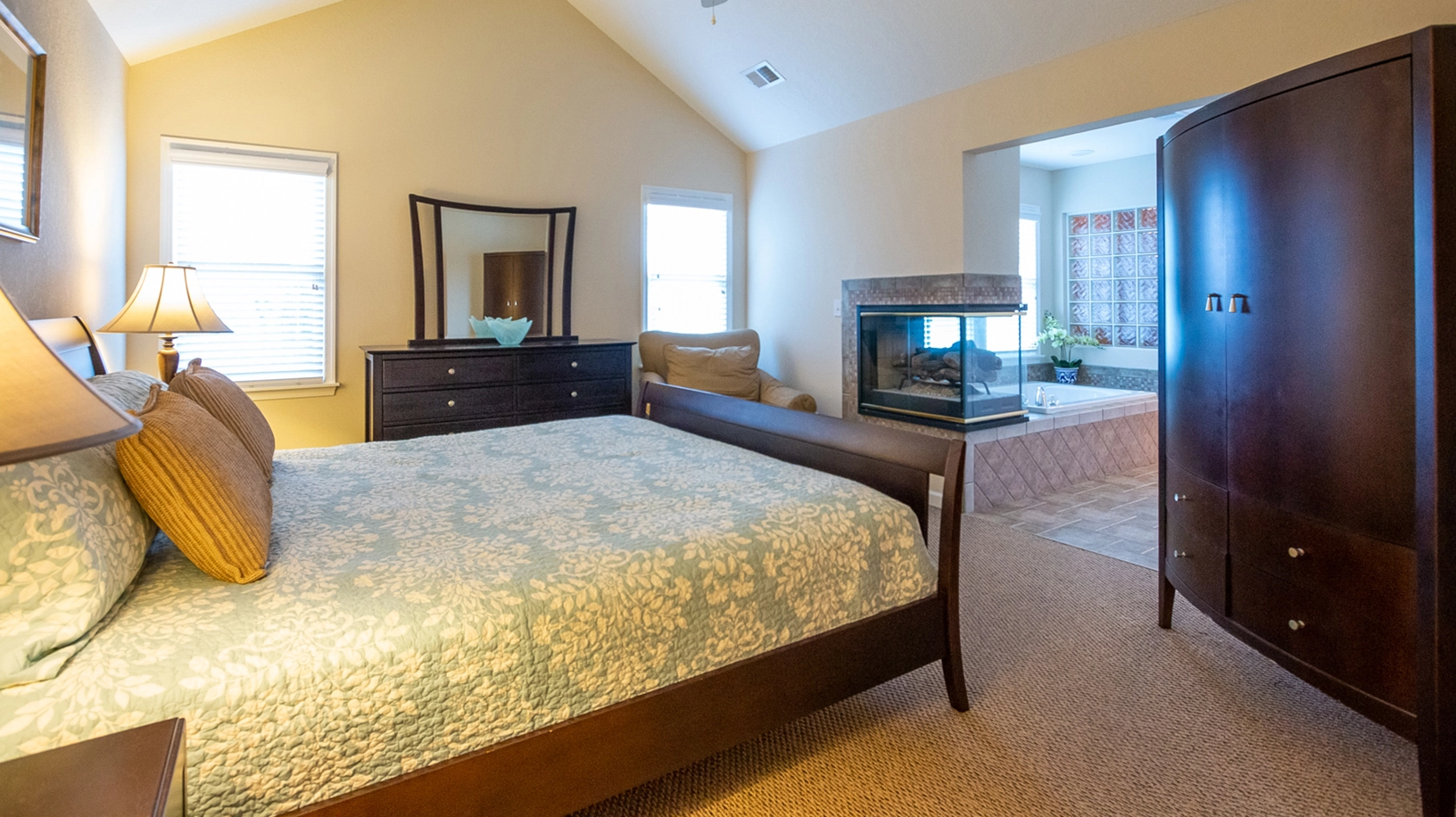 King, Standing shower, Whirlpool tub, Gas fireplace