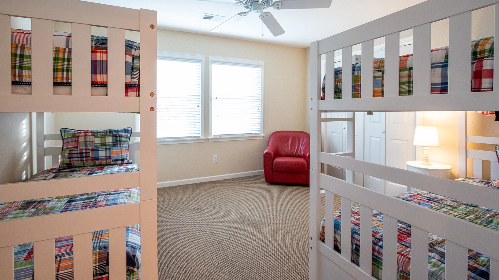 "This was a very nice home. Our family fit very comfortably (6 adults, 2 teens and a pre-teen). The home in general appeared clean but after closer inspection, some of the walls and door frames were dirty. I'm not sure how often or if the house gets a "spring cleaning" It wasn't a turn off, but something for the home owners/ cleaning staff to note. The pool was great as well as the hot tub and were used a ton. Plenty of space on the deck and plenty of porch furniture. The kitchen had plenty of dishes, but could use some containers and more pans, especially large sized pans/skillets. Another suggestion would be an electric griddle for pancakes. The furniture was comfortable and the house was beautifully decorated. The beds were comfortable. A tv in the bunk room would be a bonus even if it a smaller one. Tons of beach gear in the garage however some of the chairs are in really rough shape. Having a full sized fridge in the garage is a bonus and it was super helpful to house all our beverages for the week. The ice maker in the kitchen was a great feature too. We played tennis, but otherwise due to COVID we couldn't use the gym or game room in the clubhouse, something we were prepared for. The distance to the beach was a little longer than we like but we understood that going in as well. We would rent a golf cart for the week if we stayed again. The Four Season's is a great community and very close to alot of shops. We barely drove anywhere the entire week. The boardwalk is very nice too. Overall we were very happy with our stay."