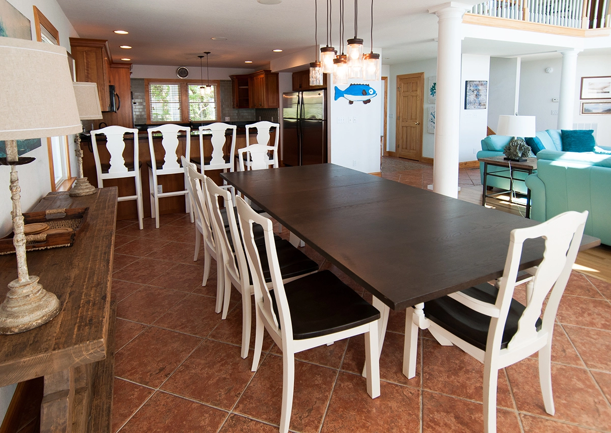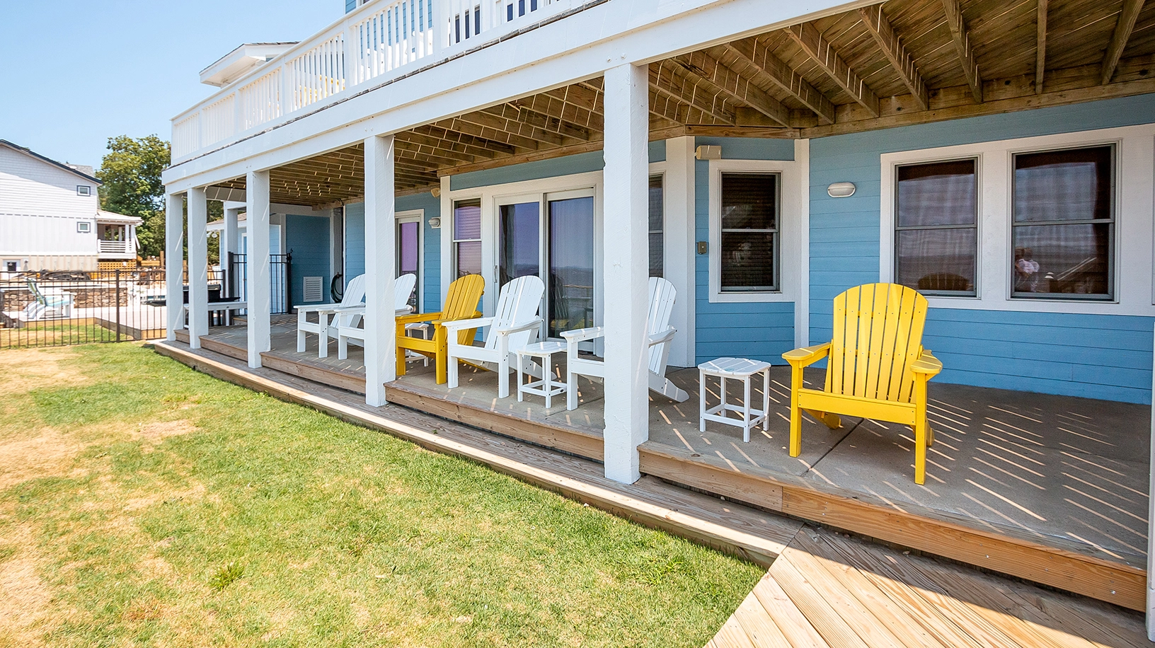 "Big Blue was absolutely perfect for our family vacation of 9 adults, 2 toddlers, and 1 infant. Very clean, spacious, and we especially liked the shallow pool for the kiddies. Every night the adults enjoyed the hot tub to soothe achy muscles or just to relax. Although on the main street, it was very private with little noise. The fisherman in our group spent countless hours on the private dock and the active adults enjoyed using the kayak and playing pickleball at the Four Seasons. It was a short walk to the town and for ice cream and other goodies. The trolley made a convenient trip to the beach with all of the paraphernalia the kids needed. The sunsets from all the decks were amazing! Also fun was watching movies and shows in the theater. The kitchen was well stocked with supplies, although one of the dishwashers should be replaced and there was no hot water in one of the sinks. The only negative for me was that one of the king masters had no AC. The positives definitely outweigh the negatives! We are already planning our stay at Big Blue next year!"