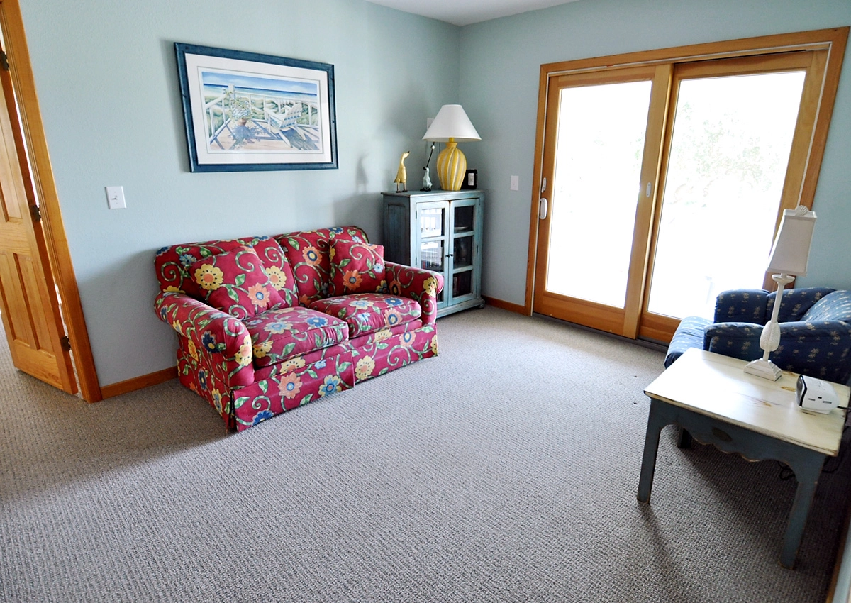 Laundry; sitting area with sliding glass door to deck; front covered decks.