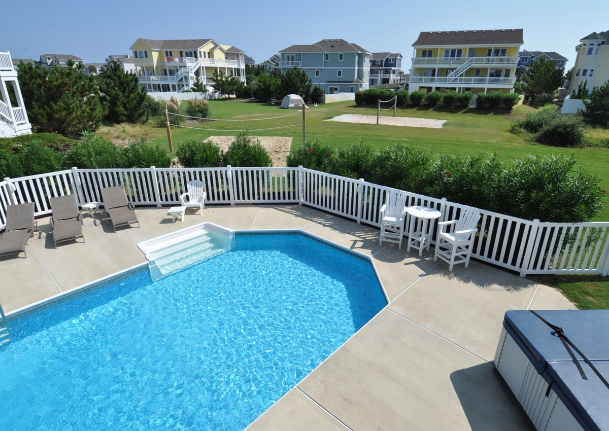 "We have rented several houses over the years in the Outer Banks. This was our favorite. The kitchen was nicely appointed, especially liked the two dishwashers. The house was very clean. Loved that king and queen bedrooms have their own bath. Loved the grassy yard and nicely sanded volleyball court. The pool was a nice size. Beach access was very convenient. The commonly shared facilities were a nice bonus."