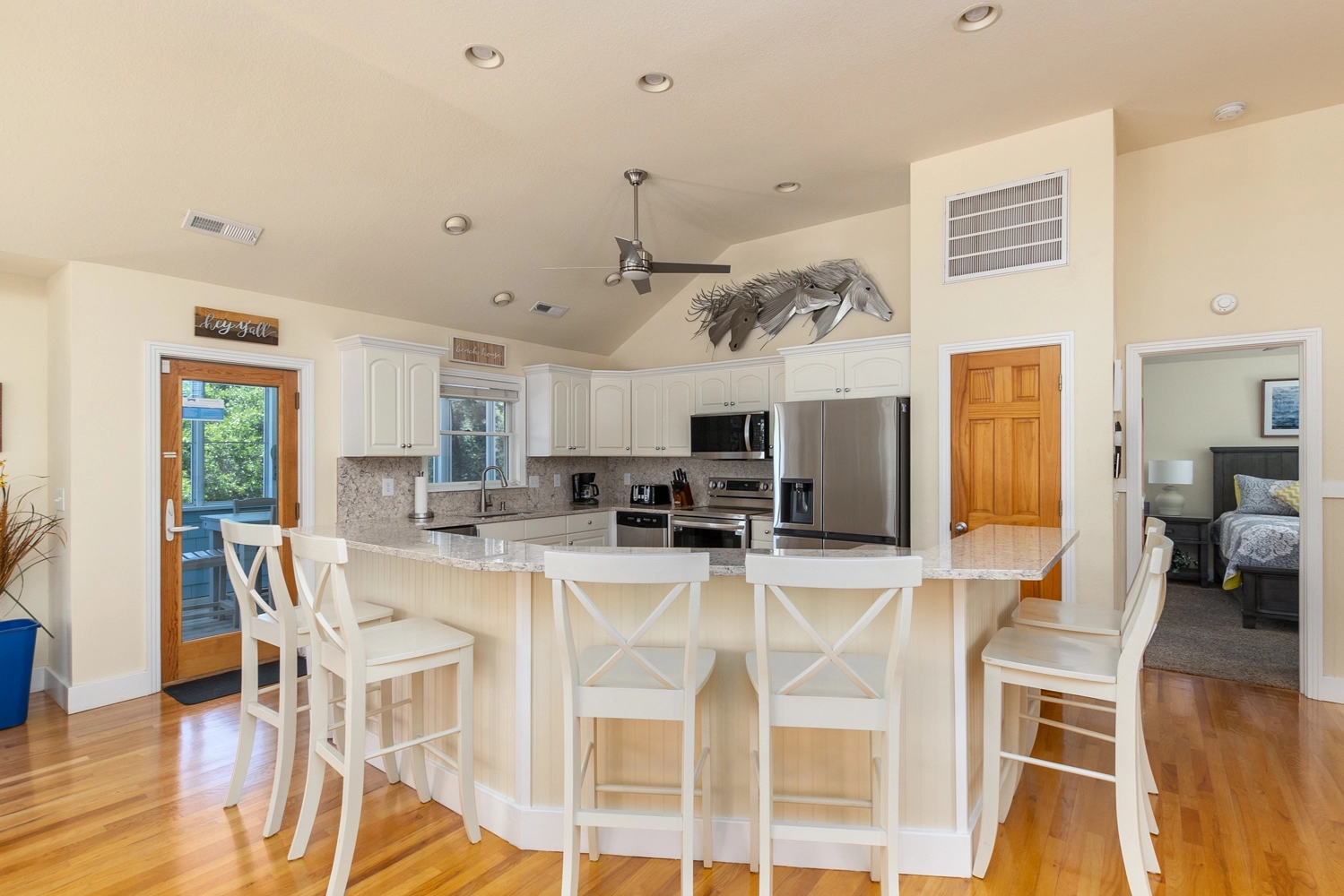 "Carpe Diem was spacious for a large group with furniture that accommodated that! The long table and ample outdoor furniture was great for our group. The beds were comfy and the pool area was perfectly laid out for sitting in the hot tub and watching the kids swim. The bonus “room” on the second level was a great hangout for the kiddos. Location was excellent, right off the bike/walking path to the beach (about a 8-10 minute walk) and on a culdesac which made it easier for the kids to bike/scoot while the adults packed up for the beach each day. Excellent home for a group with kids!"