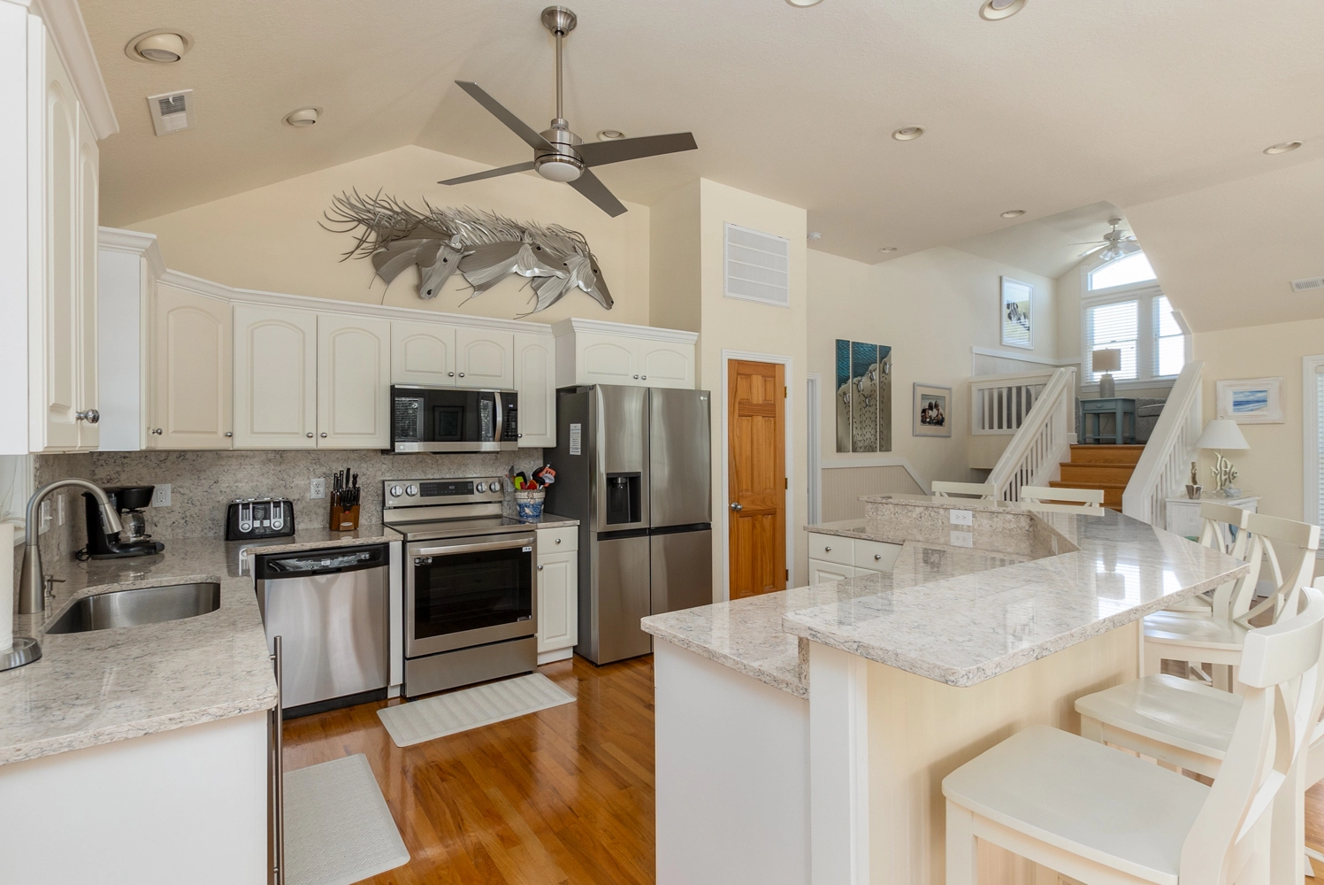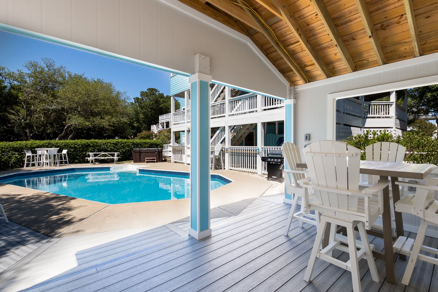 "Carpe Diem I is a beautiful home and has all of the amenities for our family. The pool table is a real plus and the 2 bunkbed rooms are perfect for our grandchildren. There is plenty of parking and the pool and cabana allowed our family to have plenty of room for sun or shade. It is close enough to the ocean for our family's comfort. The sitting area on the 2nd floor is a great addition. The kitchen is well stocked with what is needed to provide a meal for the family and the furnishings are very comfortable."