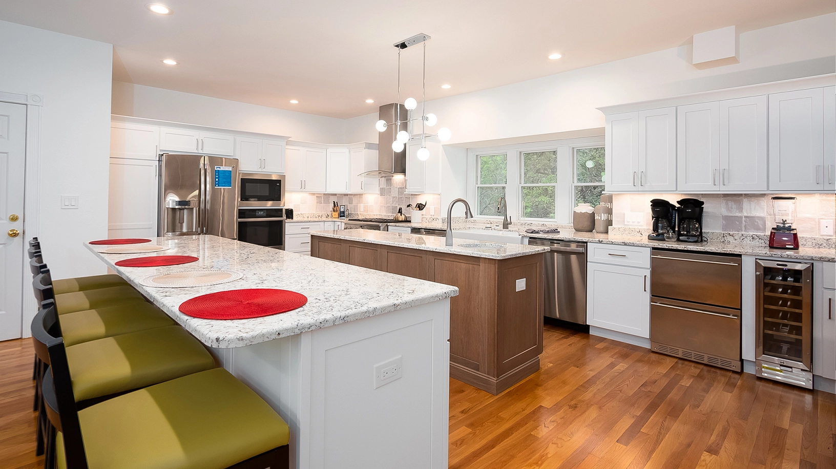 "Very large kitchen with two islands, two dishwashers, two ovens. Great for a large group."
