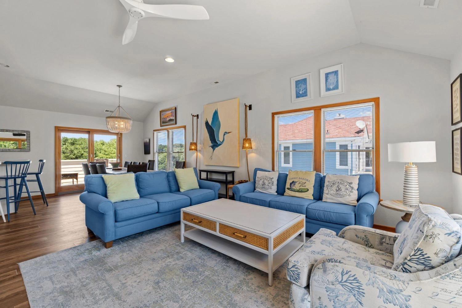 "Really enjoyed the home. Nice and roomy. Loved being able to walk to the beach. Tastefully decorated, would love to know where they got the beautiful baskets. Everyone was pleased that they had their own decks. Beautiful home!"