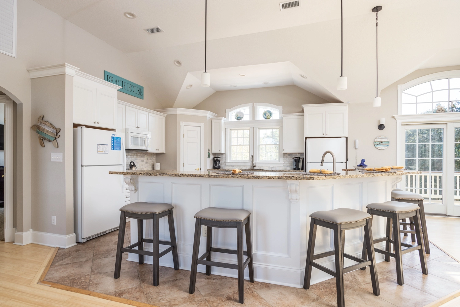 "Loved the two dishwashers. There was always a place to put dirty dishes. We had extended family and cooked most of our meals, 2 dishwashers were so helpful. Two clothes washers and dryers also very convenient for large group! Beds and linens very comfortable. The pool and hot tub were very popular. Distance to shops and beach were walkable, even better by bike, very close and covenient. Twiddy responded quickly to request for repairs on frozen ice maker, showing up within minutes and returning repaired ice maker the following day. Excellent vacation in a lovely home. Highly recommend this home."