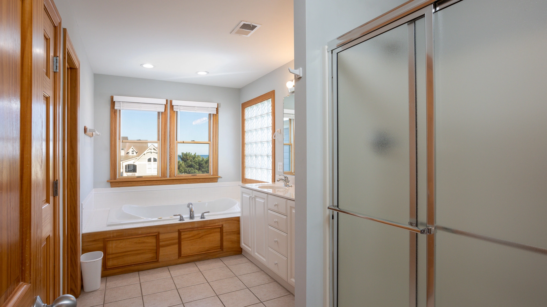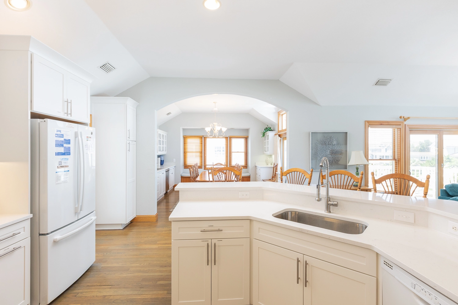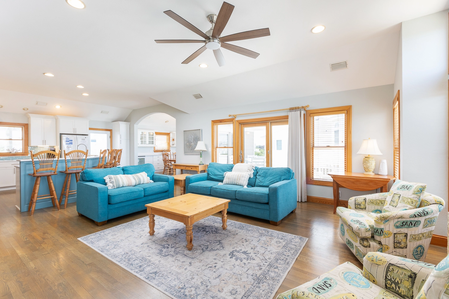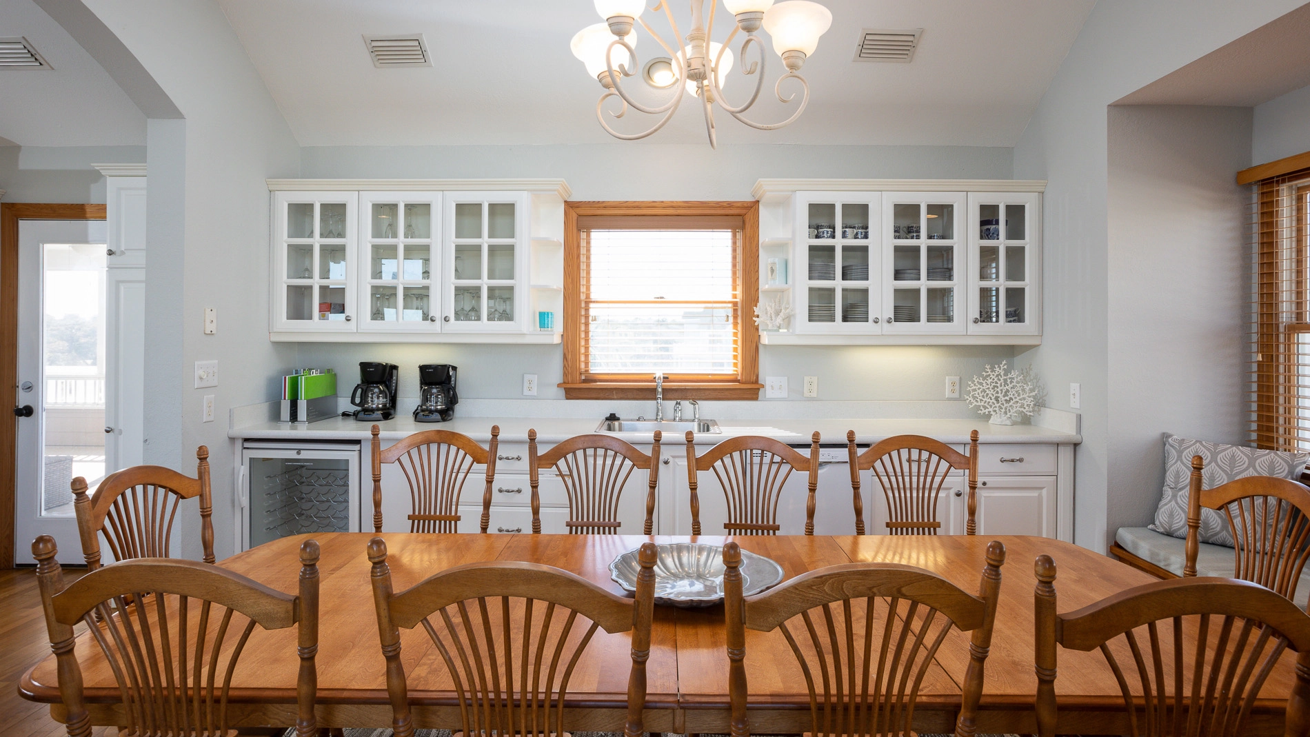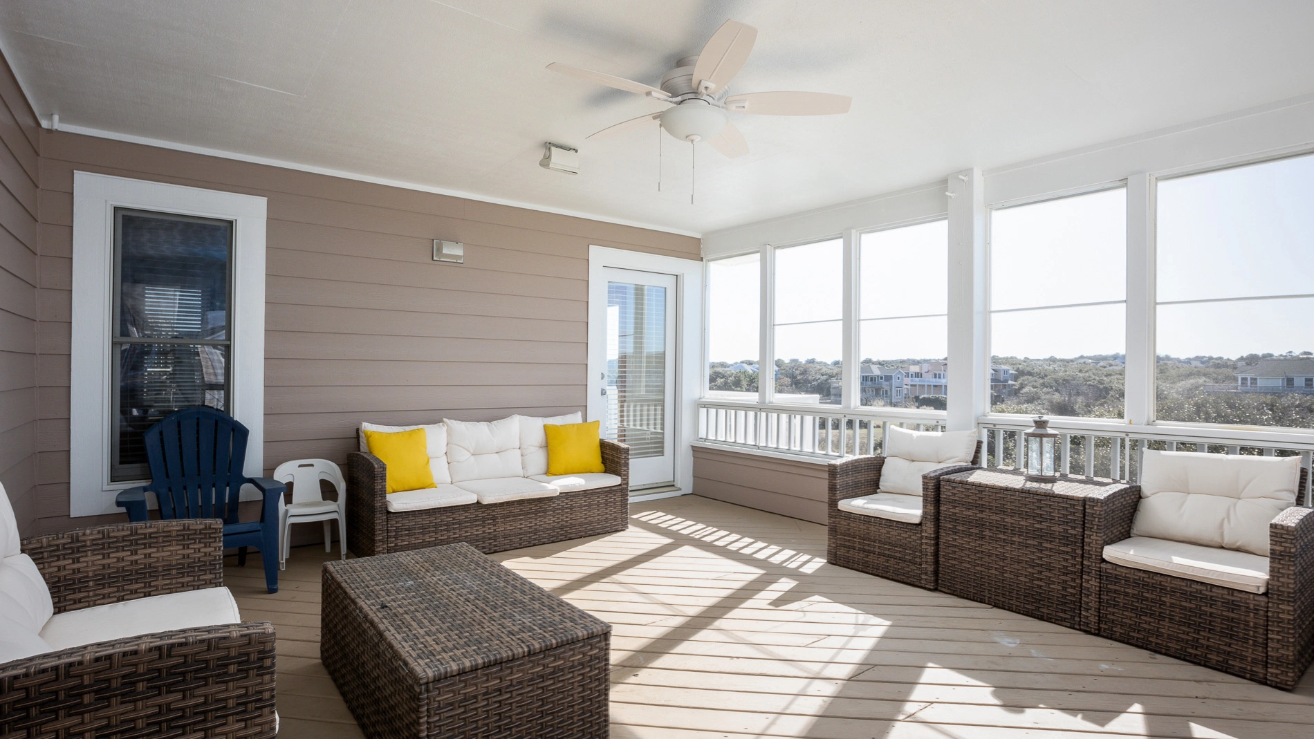 "Large open bedrooms and living spaces with an extra sink and cabinet storage in the dining room. Gorgeous views from the many porches. Felt like it had private beach access being so close!"