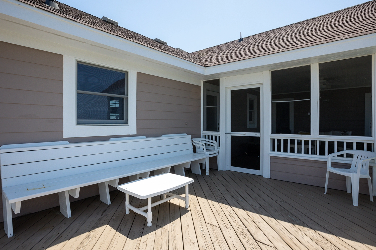 "We have stayed here for 5 years but the house is clearly showing its age. The screened in porch was not really functional as the screen door's screens were detached. The outside facilities (e.g. shower, faucets, hot tub, grill) are quite worn. Needs an infusion of care and attention."
