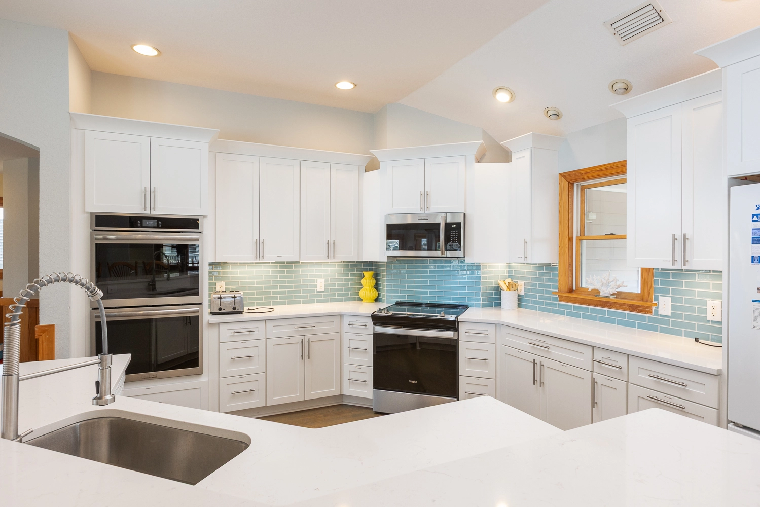 "We loved the flow of the kitchen, living, and dining spaces. The added counter space, storage, beverage area, dishwasher, and window seat in the dining area were amazing….and still provided plenty of room for walking by with everyone seated around the table. The drop leaf table was perfect for puzzles and games. It was so nice to keep those activities set up throughout the week for lots of family fun! The screened-in porch is very spacious and provided a bonus gathering area. Proximity to the beach is outstanding, and Four Seasons is a beautiful family oriented neighborhood. We were so close to many shops and restaurants, and loved using the indoor pool facility in the club house. We had a fantastic stay at Four Seasons Blessing!"