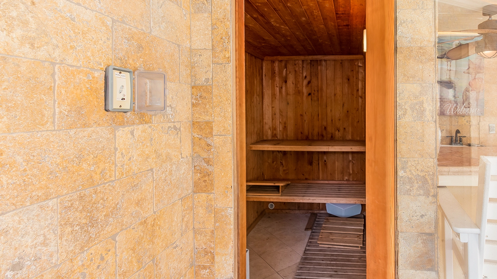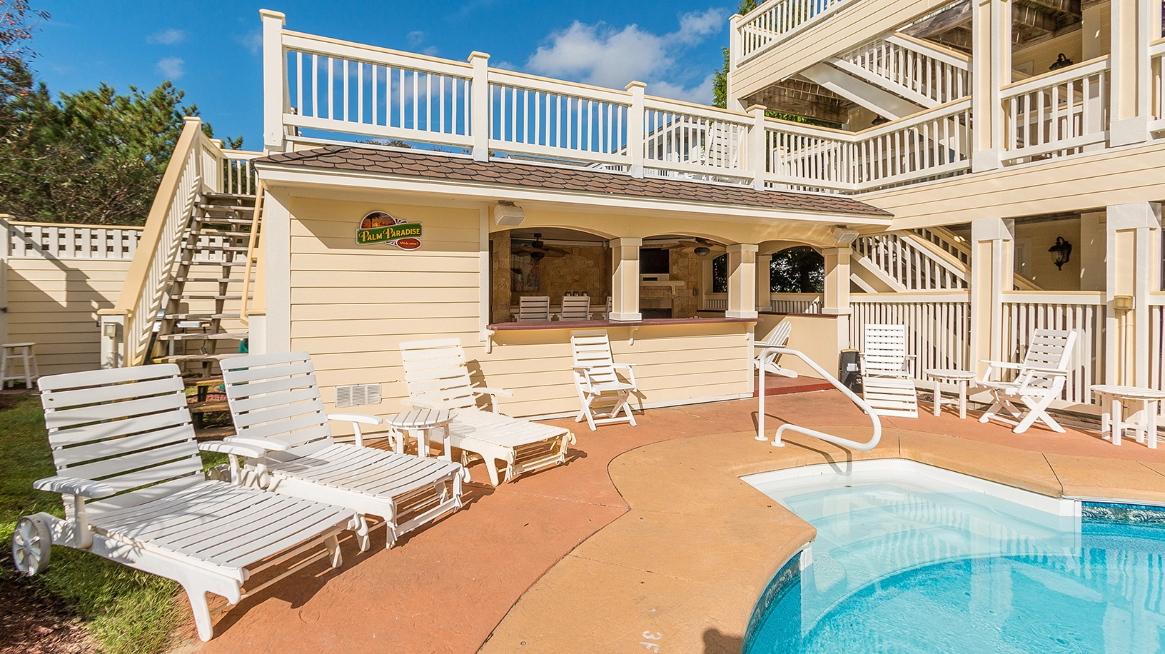 Elevator, kidney-shaped pool with waterfall, poolside cabana with wet bar, sauna and half bath, multiple Smart TVs and reduced greens fees at the Kilmarlic Golf Club.