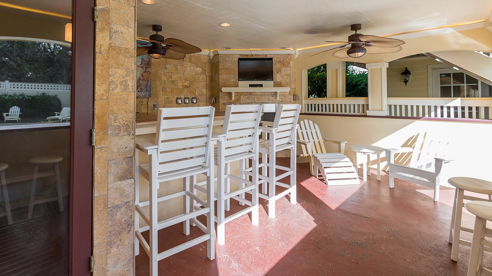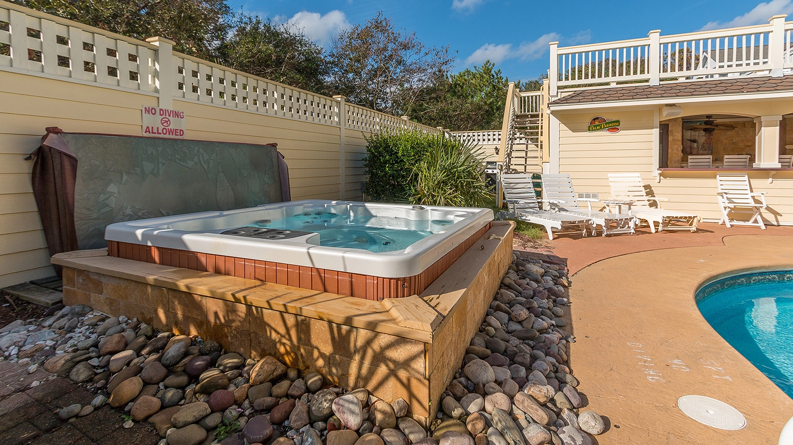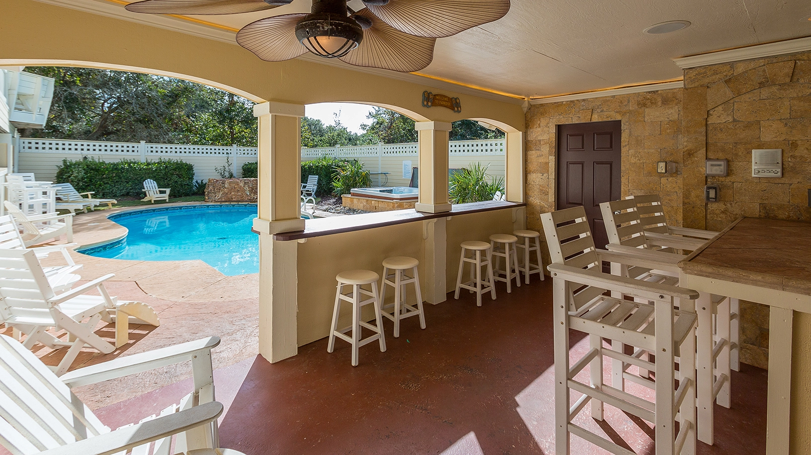 "Loved the heated pool, hot tub, setup in the back yard. I like how the fence and surrounding area in the backyard blocked the wind so it felt like summer in the spring. The Ice makers were a plus!"