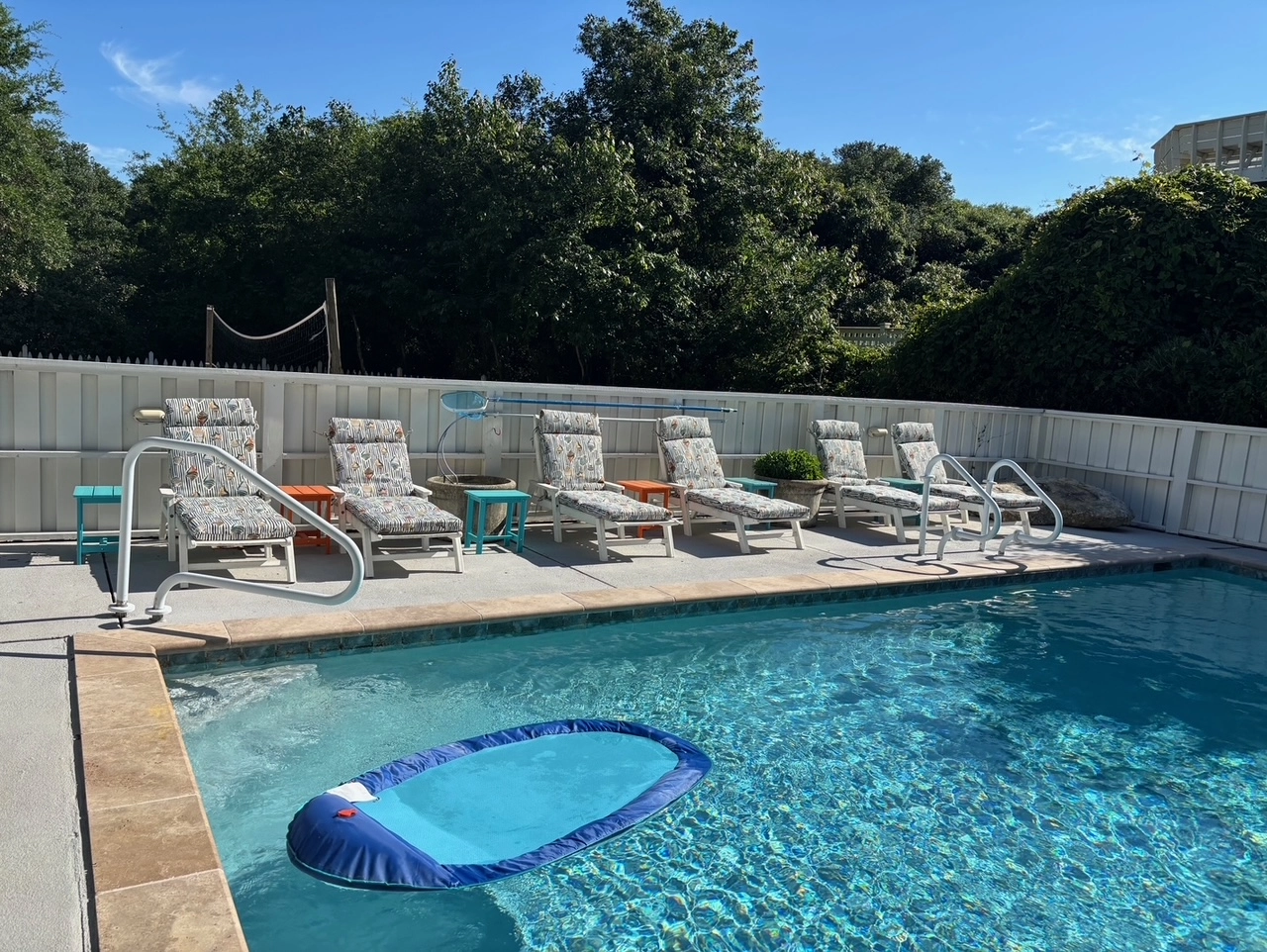 "Our family enjoyed our stay. This home is in walking distance to the beach and the little shops. Pool was refreshing and although there were 13 of us we didn’t feel crowded. We LOVED the kitchen table and we were all able to eat meals together. The two queen size beds caved in if two people were sleep in the bed together."