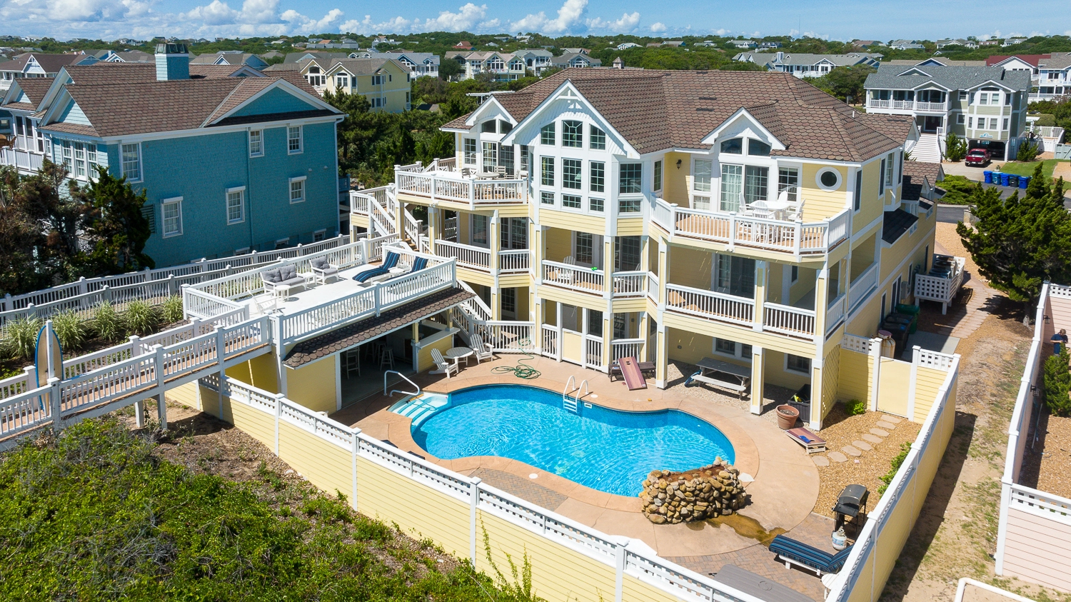 "Amazing boardwalk and beach overlook, fantastic amenities and games. Comfy beds, lots of seating for large groups. Beautiful views."