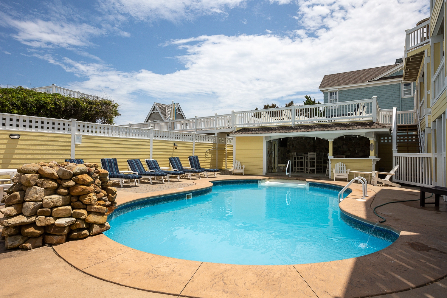 "Royal Bahamian was fantastic. We experienced challenges that any beach house rental comes with (1 fridge wasnt working - there are 4 that were working though!). Ice maker on top level wasnt working and that would have been a nice addition but basement icemaker covered our needs. Overall the kitchen was by far the best appointed kitchen of any beach house my family has ever rented. It was impressive! The pool and sauna was great, dune top cabana was amazing. Loved the chair and umbrella service. Overall this was an excellent trip - next time we will order less rain and more sunshine. Thanks for a great relaxing vacation!"