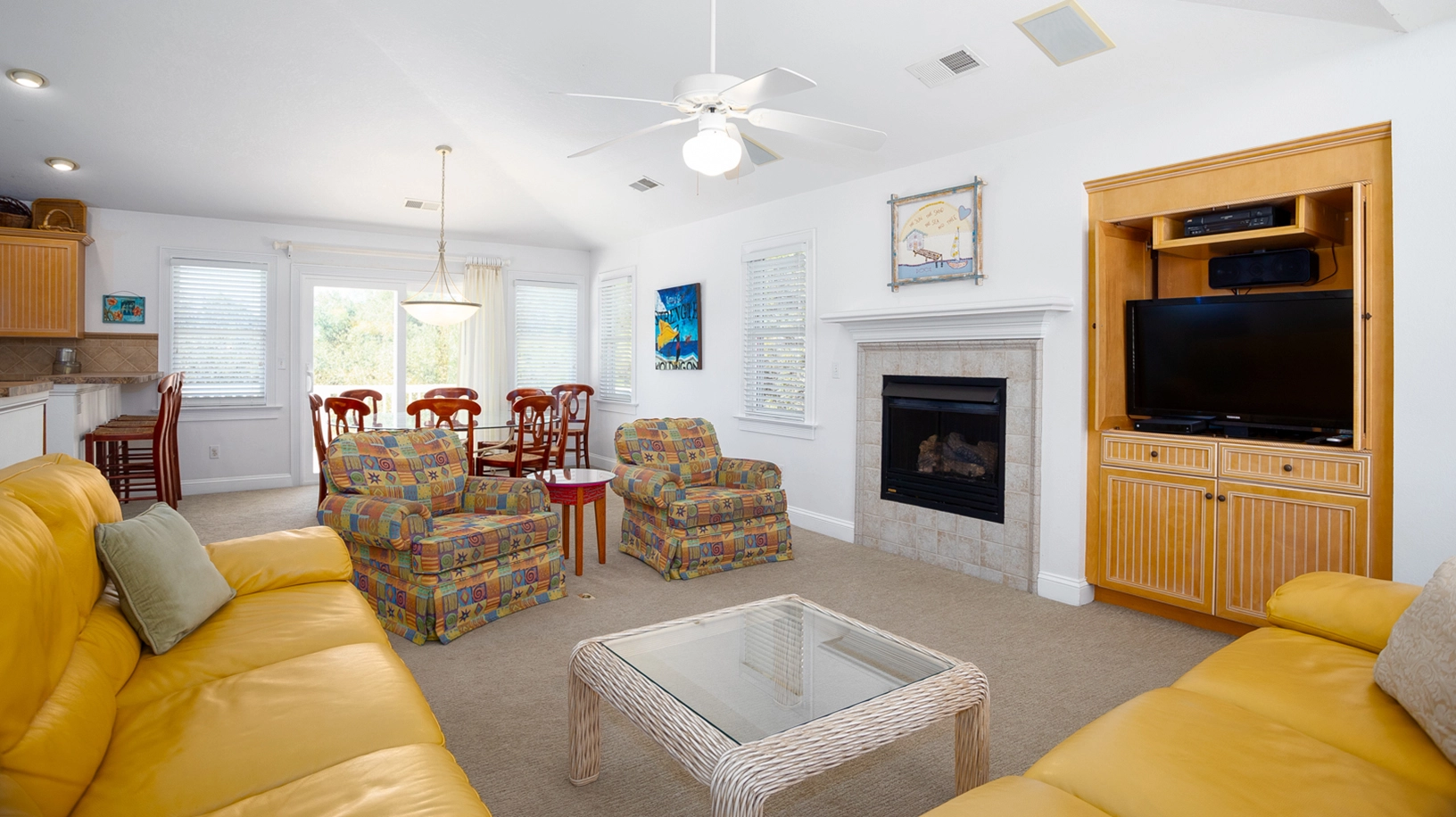 "The home is really nice and we loved the layout. The 4 Seasons Community is the cream of the crop for the Duck area. It was only a 9 minute walk to the beach if you missed the trolley. Our only complaint was that the kitchen was not well stocked for cooking and the no gas grill."