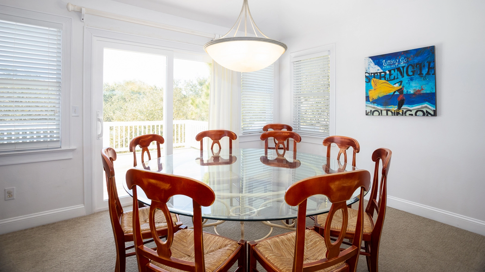 "The house was perfect! Location was walking distance to many shopping areas and restaurants. We rode our bikes to Scarborough Faire, the beach, and Duck Deli. The house is well appointed with beach art and plenty of books to read while relaxing by the pool or inside during a cozy, rainy day. Plenty of space for three families and the kitchen is well equipped. Especially liked the path next to house for easy access to the beach and main road."