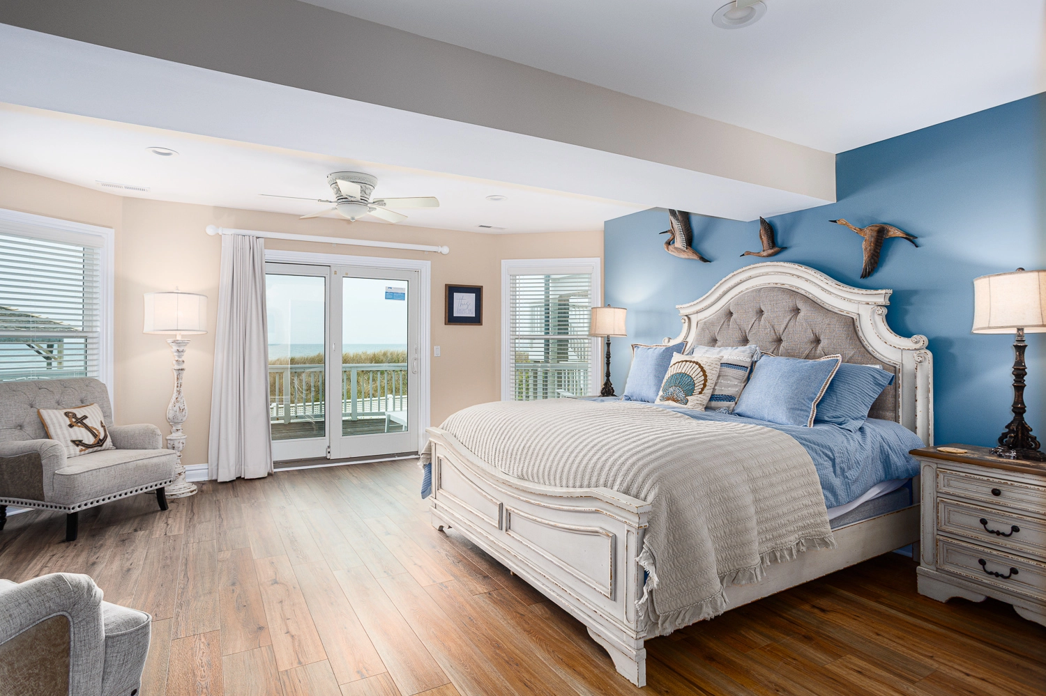 “Summer Lovin’” offers the ultimate OBX vacation experience! This oceanfront retreat has panoramic ocean views, from the Duck Research Pier to Southern Shores. A plethora of amenities are offered both at the home and in the gated Four Seasons Community. Duck Village’s best restaurants, shops, and activities are a walk or a short drive away, or take a ride on Four Seasons’ trolley, which runs throughout the community (in-season only). Since the home is in such close proximity to Duck Village, there is the option of parking the car for the week and walking, biking, or taking the Four Seasons trolley to get around. Four Seasons’ community amenities include a community pool, tennis court, basketball court, playground, and a clubhouse with an indoor pool, fitness center and game room. There is also a soundside pier, which is perfect for watching an amazing OBX sunset or going crabbing with the kids. The home is pet friendly, so your four-legged family members are welcome to join the vacation fun.