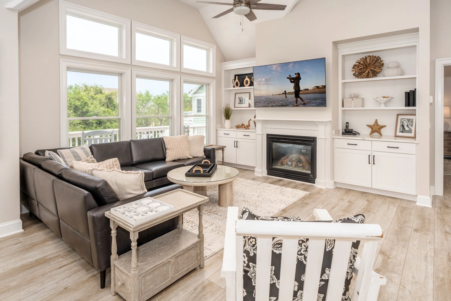 "The house is beautiful and comfortably fit our large family. It had everything we could need and more. The walk to the beach was easy. Convenient location to run out to shops/restaurants as well. We have stayed in other OBX houses, but this has been our favorite one thus far!"