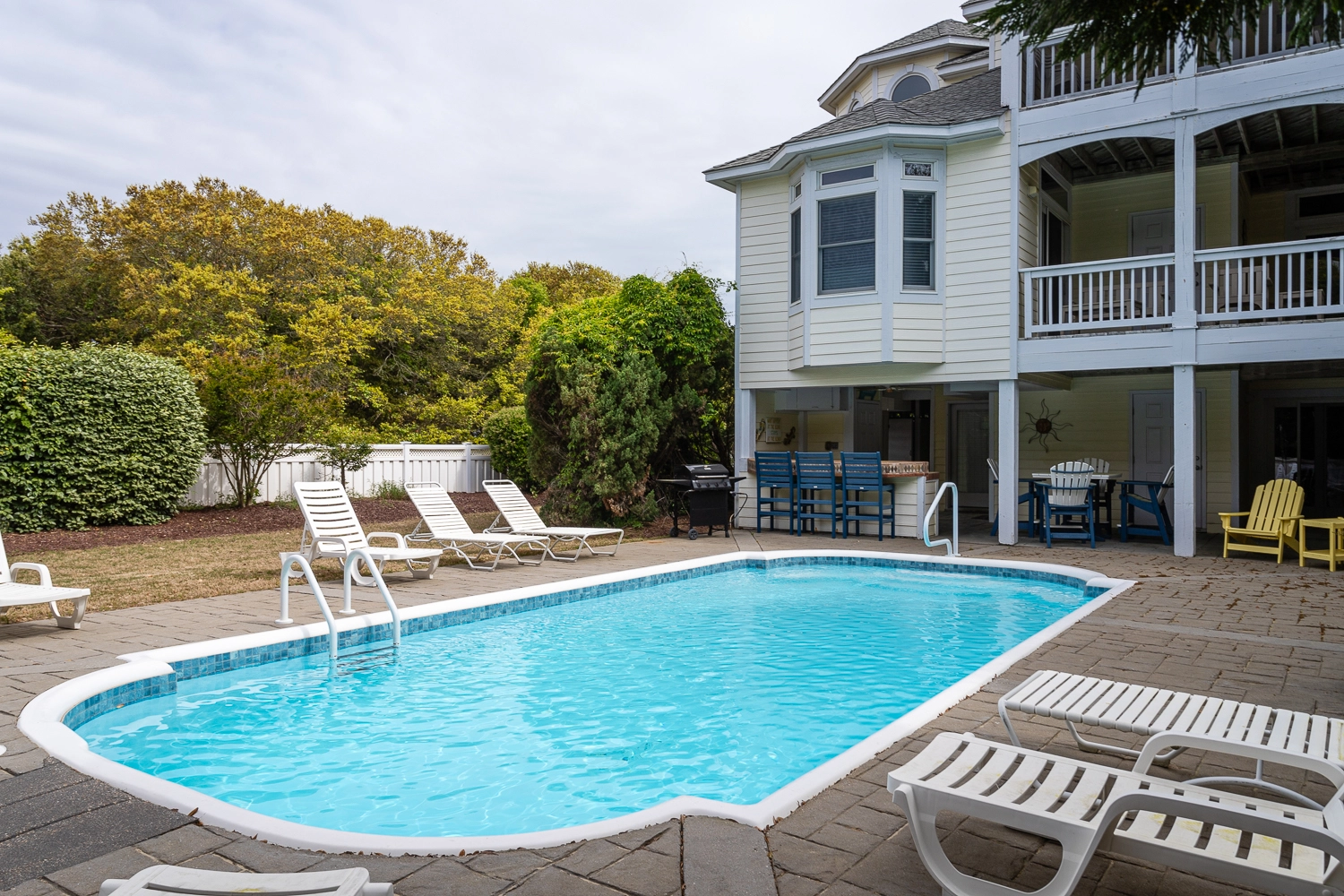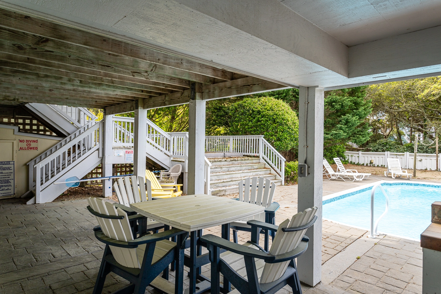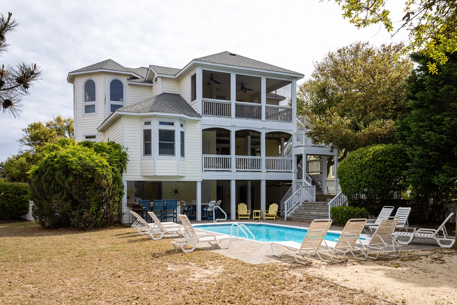 "Loved our stay at Windsong. The top floor was spacious and the kitchen well stocked. Large screened-in porch was great for dinners and conversation. Family members really appreciated the full sized refrigerator and cabana bath adjacent to the pool. Quick walk to enjoy a day at the beach or a trip to Duck."