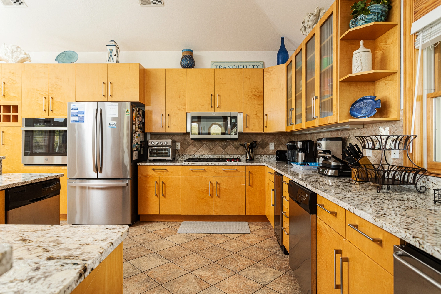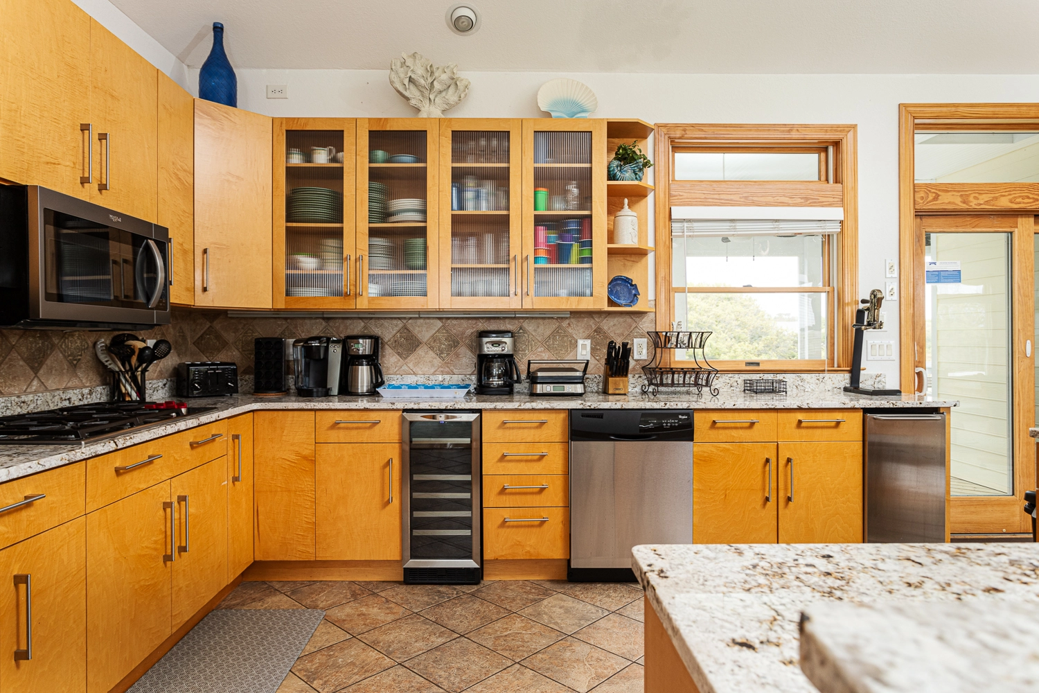 "The kitchen was very well stocked. The large living room/dining room and kitchen was so open that it allowed all 16 of us to gathering together. Would have loved a few more large beach chairs in good condition."