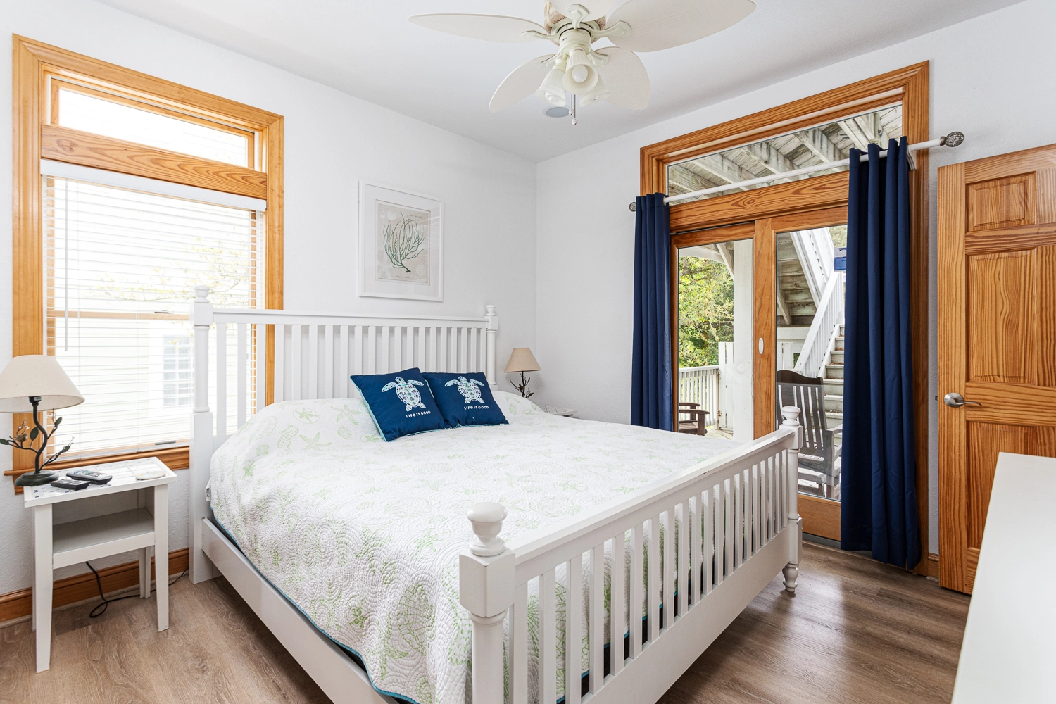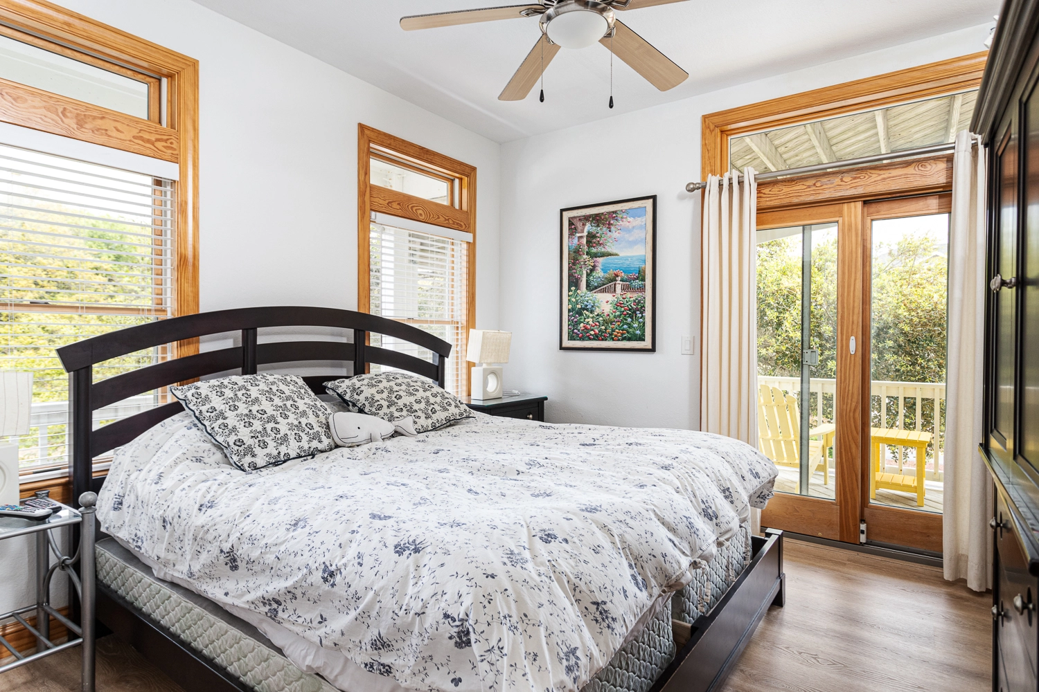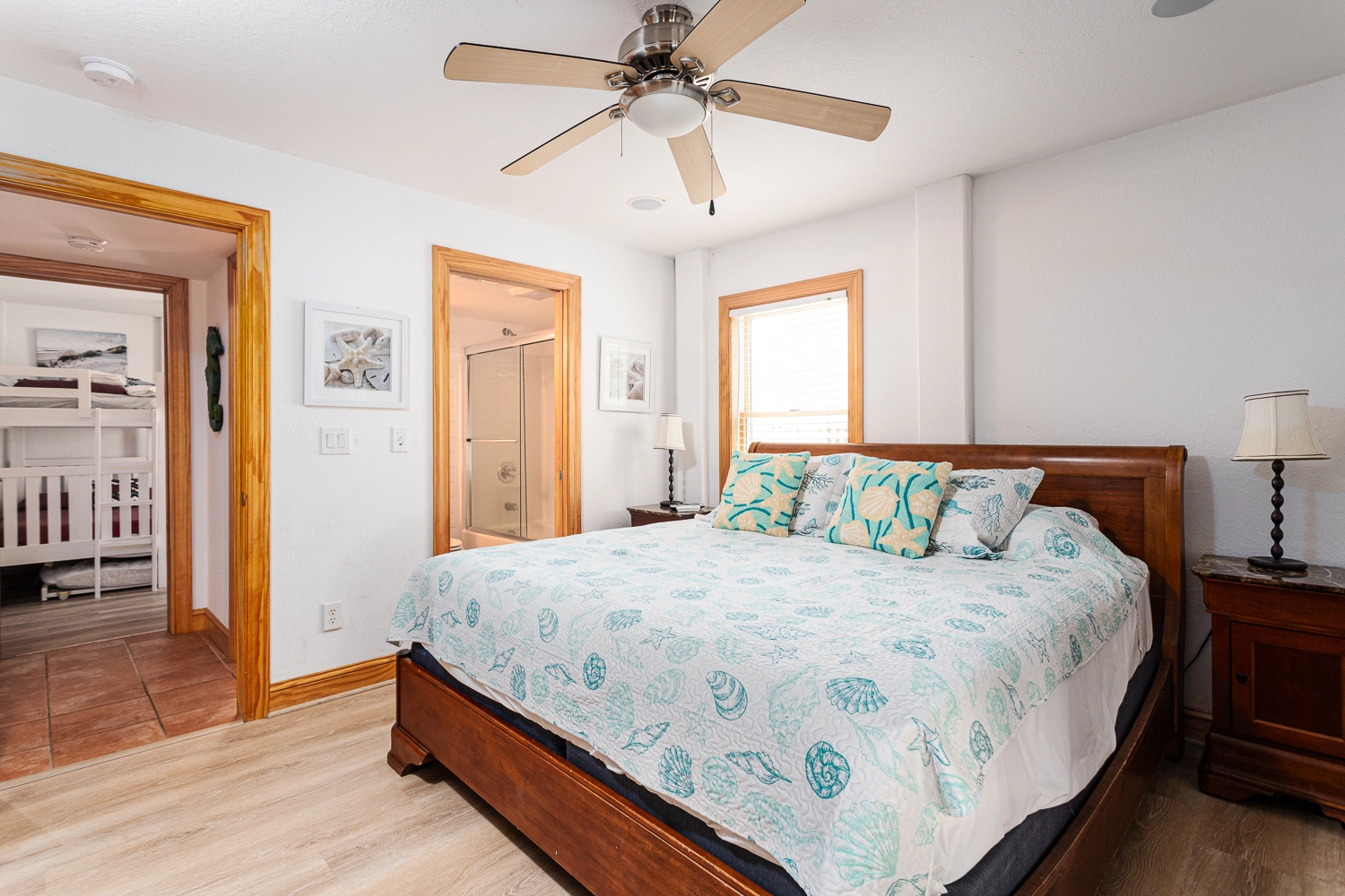 King, Shared bath with Room 2, Standing shower, Deck access