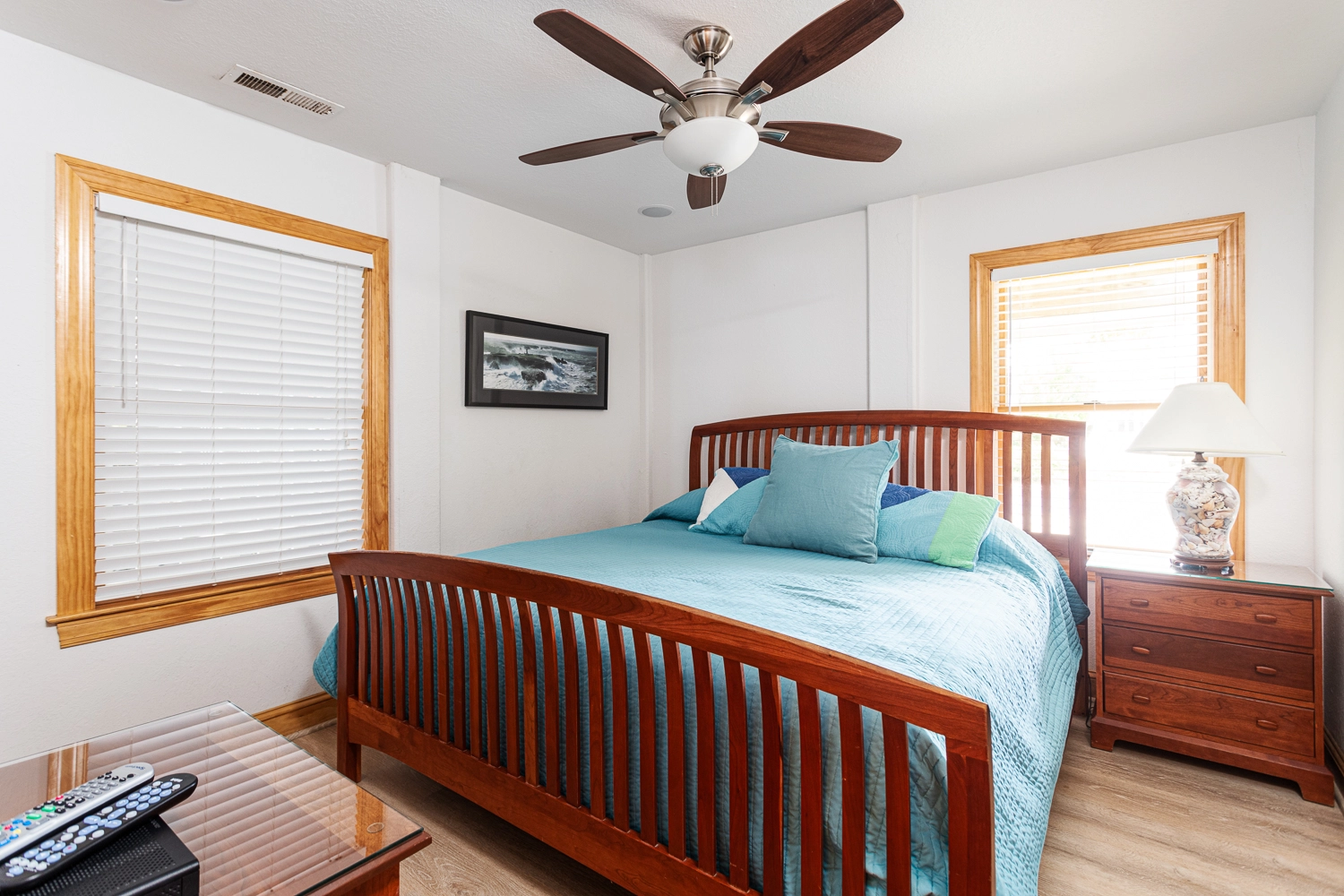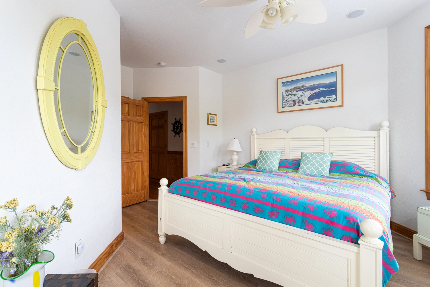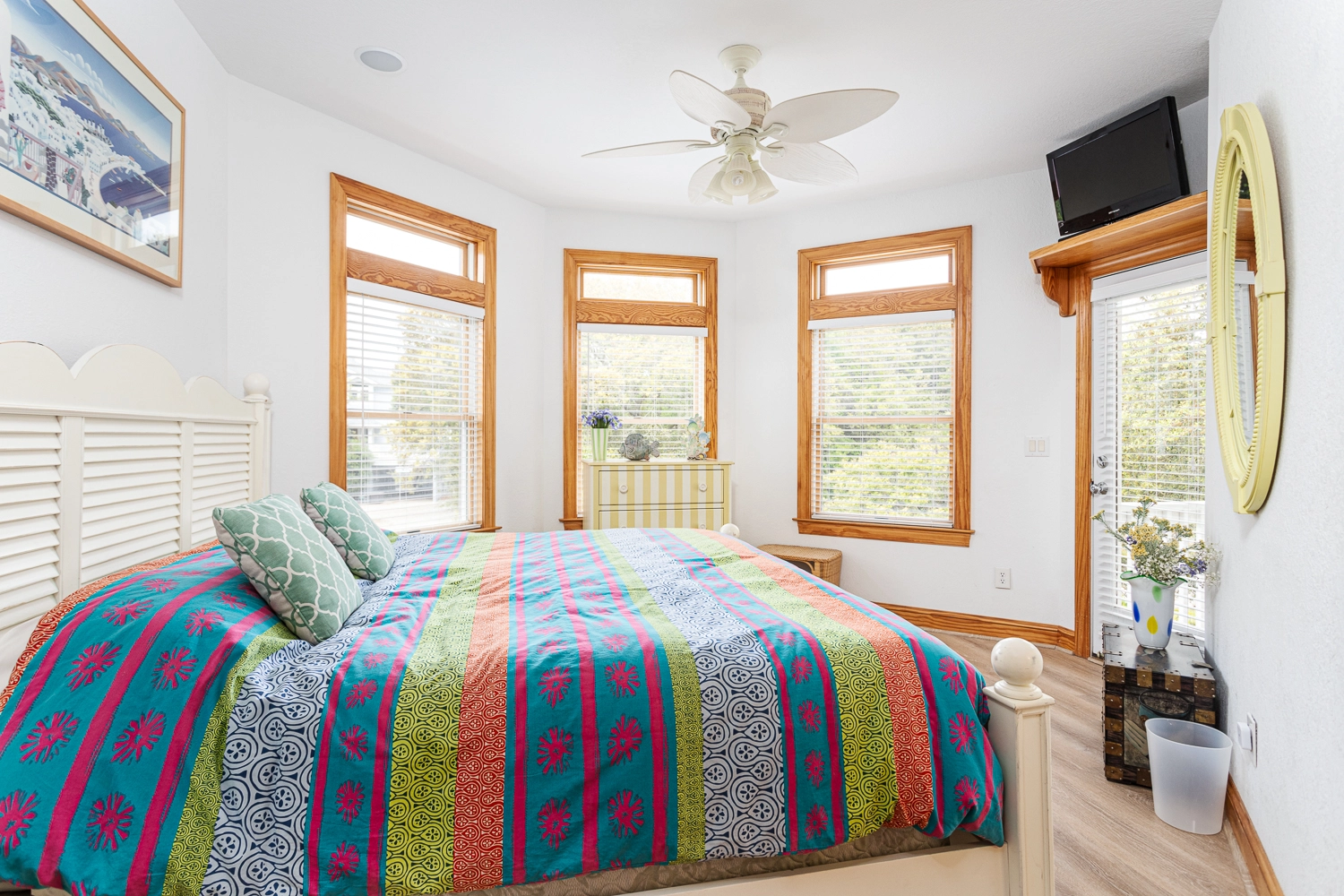 King, Shared bath with Room 2, Standing shower, Deck access