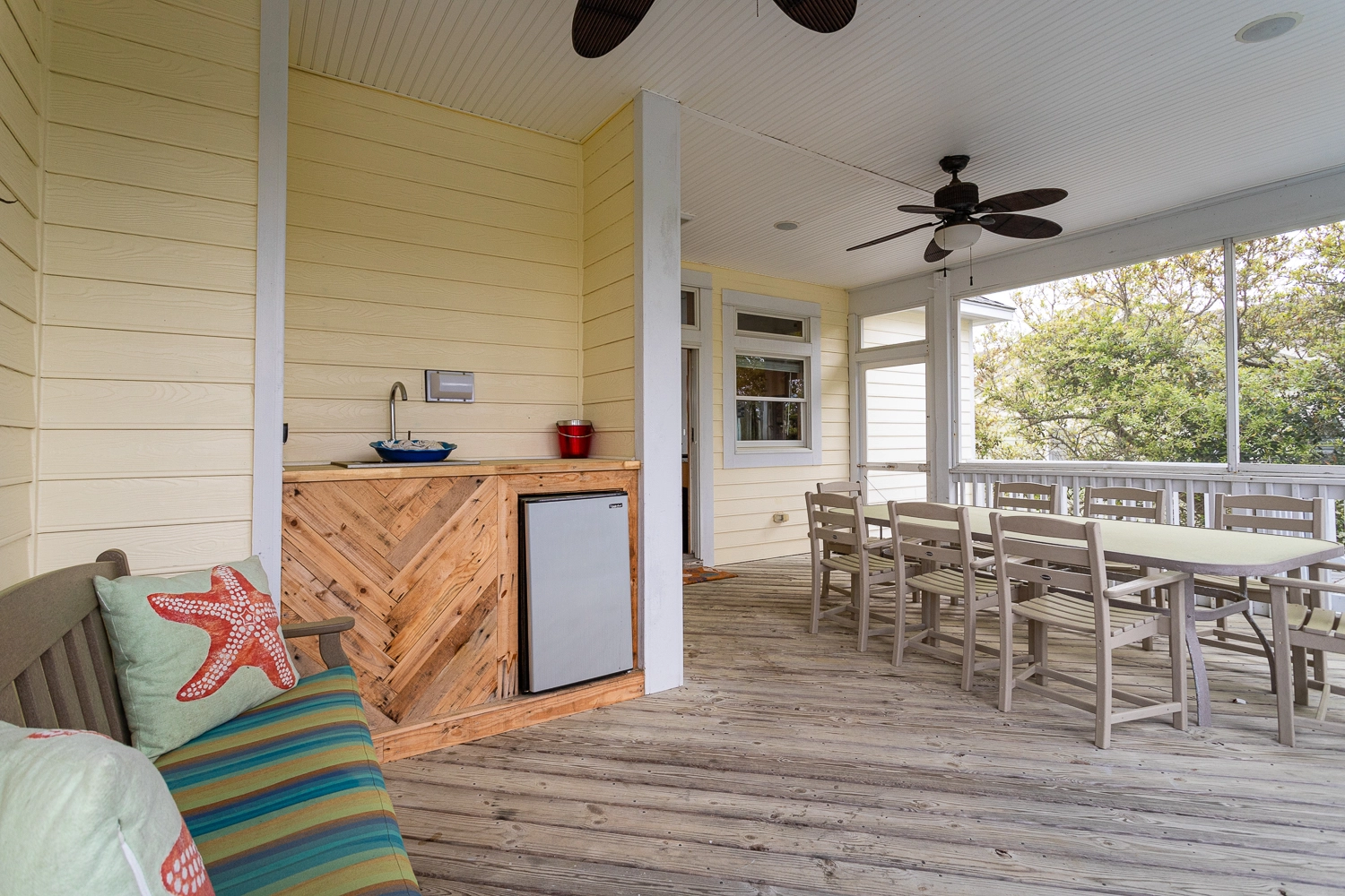 "The great room, kitchen, screened in porch were wonderful. We appreciated how well stocked the kitchen was and the two dishwashers was awesome. Each of the bedrooms was terrific. We truly enjoyed the house so much."
